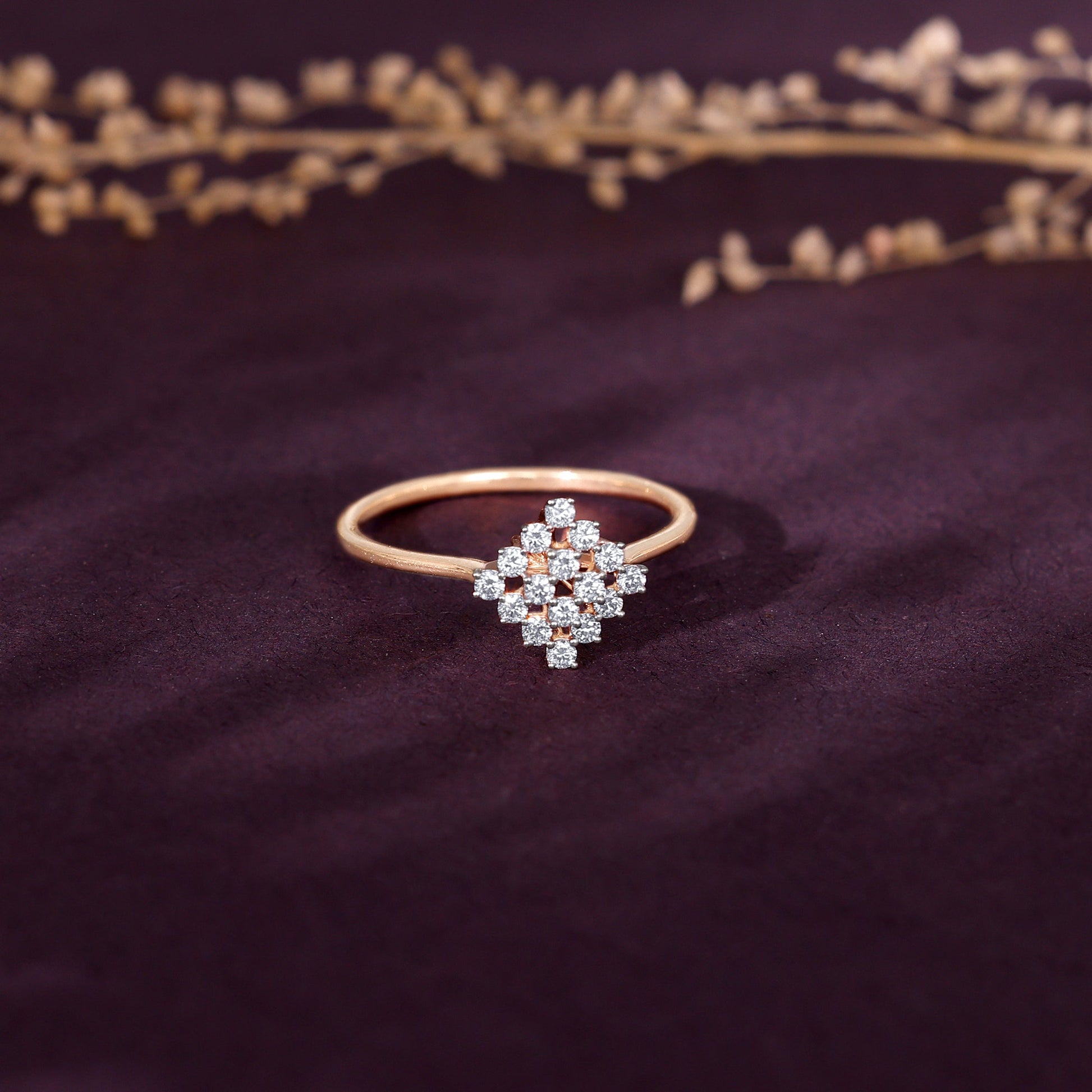 This pure rose gold ring features a gorgeous floral motif with lab-grown diamonds studded.