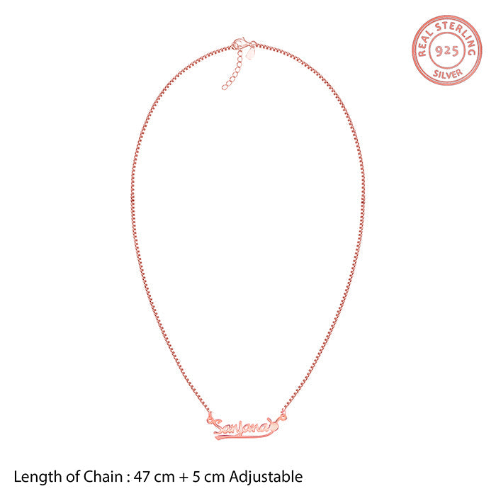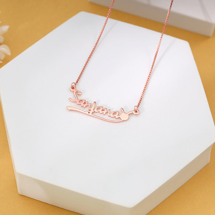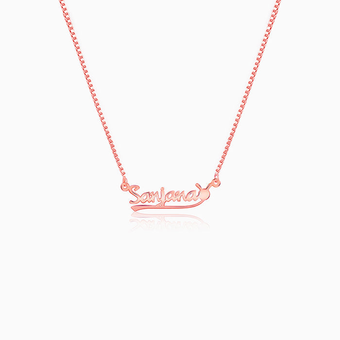 This personalised rose gold jewellery features a bunny motif at the end of the name you choose to personalise.
