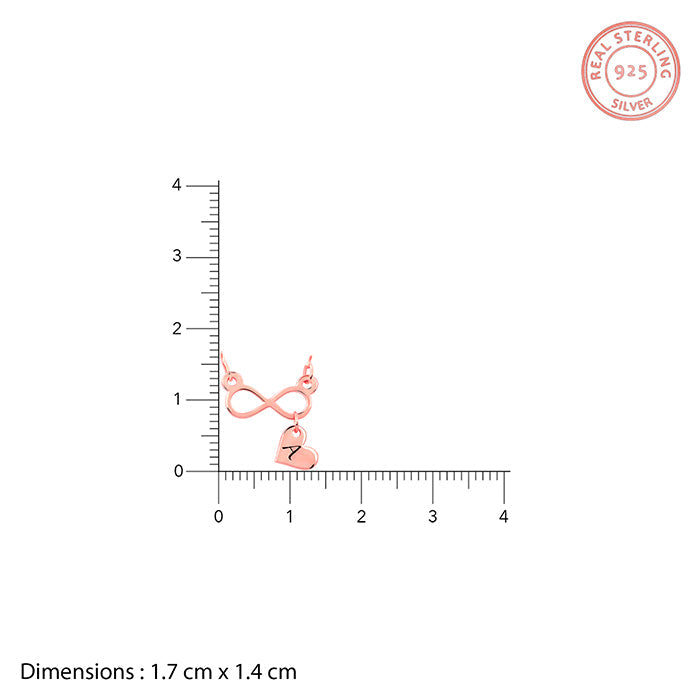 This personalised rose gold plated infinity charm necklace features an infinity motif with a dangling heart.