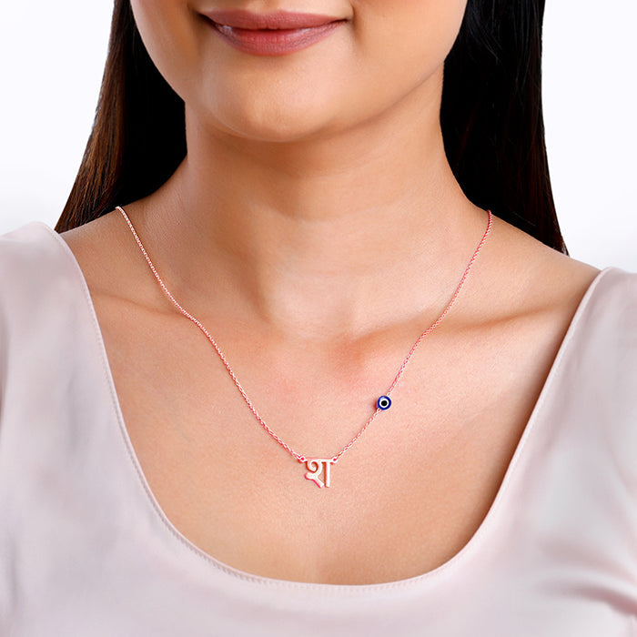 Rose Gold Personalised Hindi Initial Evil Eye Necklace