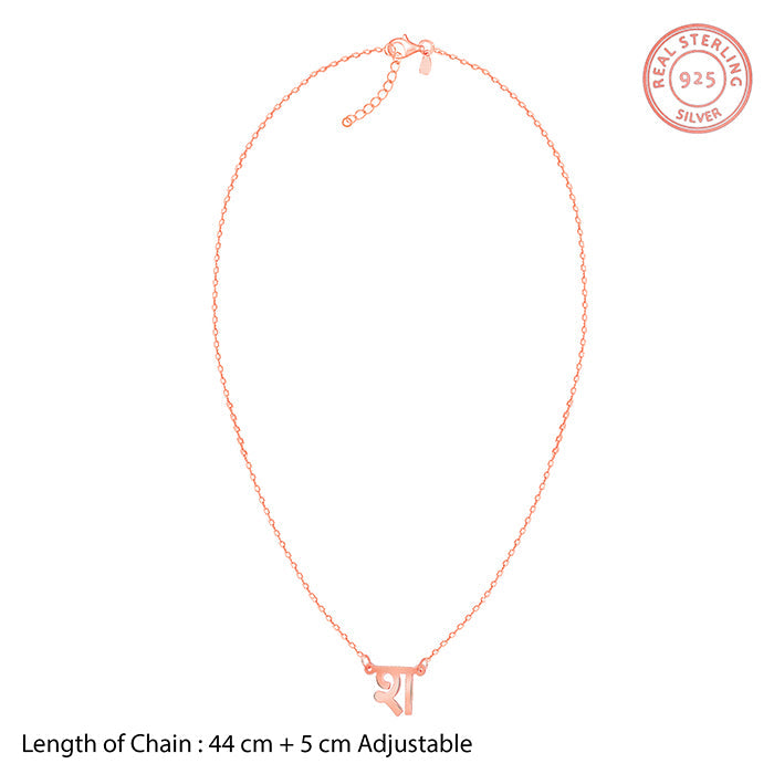 This personalised rose gold plated necklace for women features a meticulously crafted hindi initial of your choice as the central pendant. The chain is uniquely accented with an evil eye bead, adding both personalised meaning and a touch of protective symbolism.