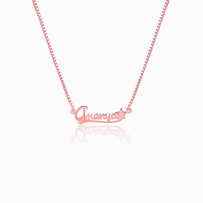 This personalised rose gold jewellery features a star motif at the end of the name you choose to personalise.