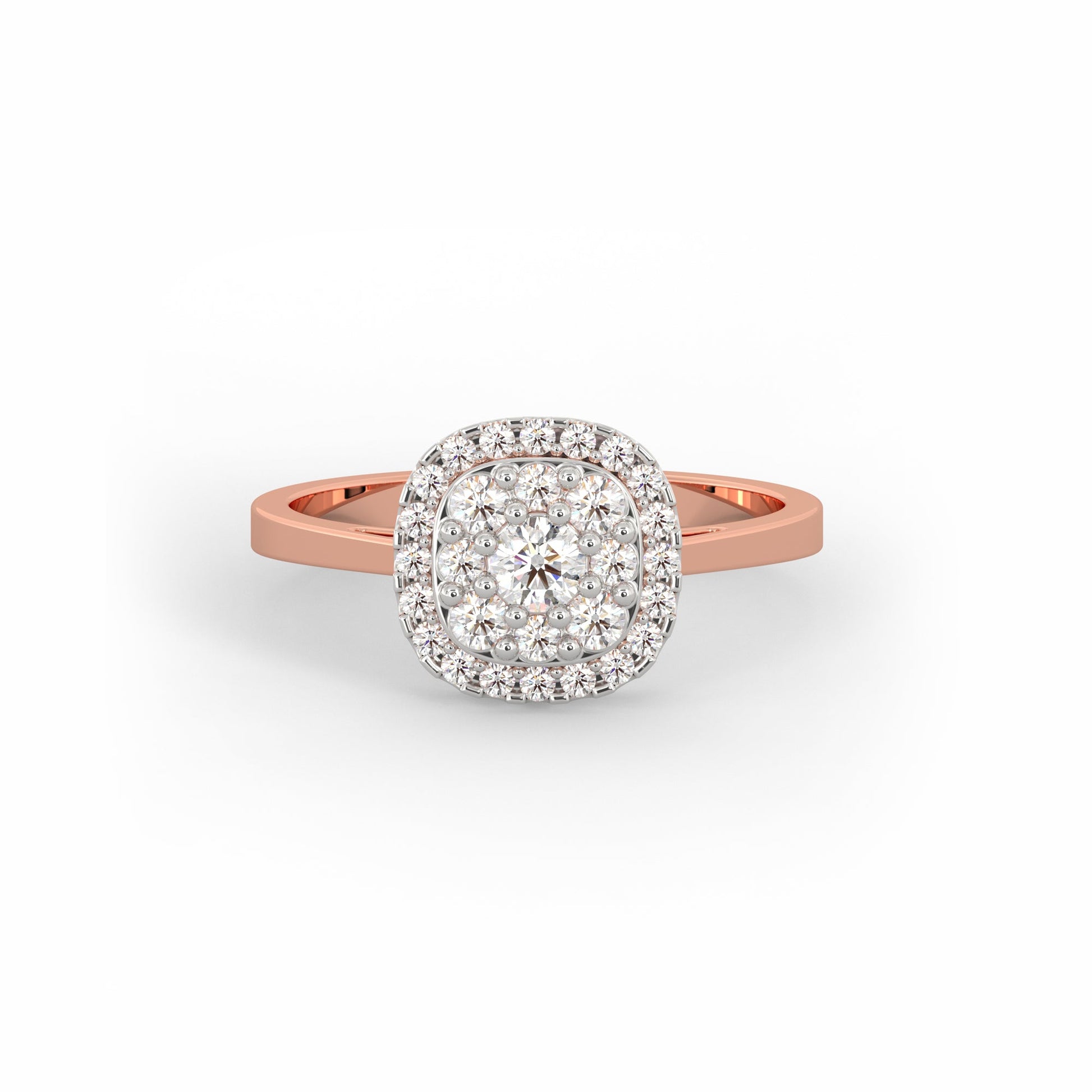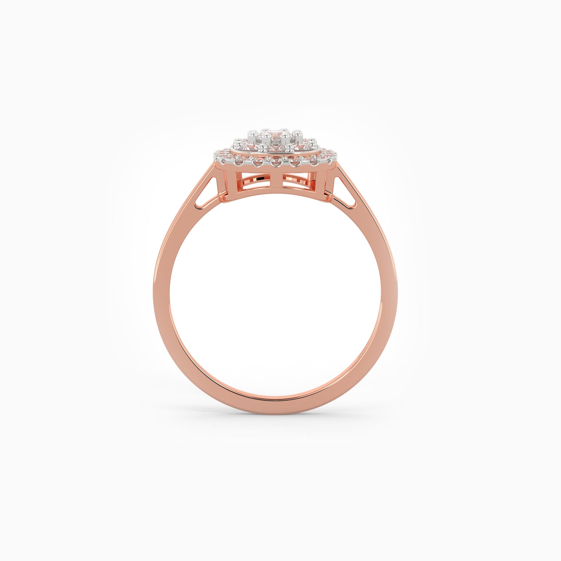 This pure rose gold ring features a square motif studded with sparkling lab grown diamonds.