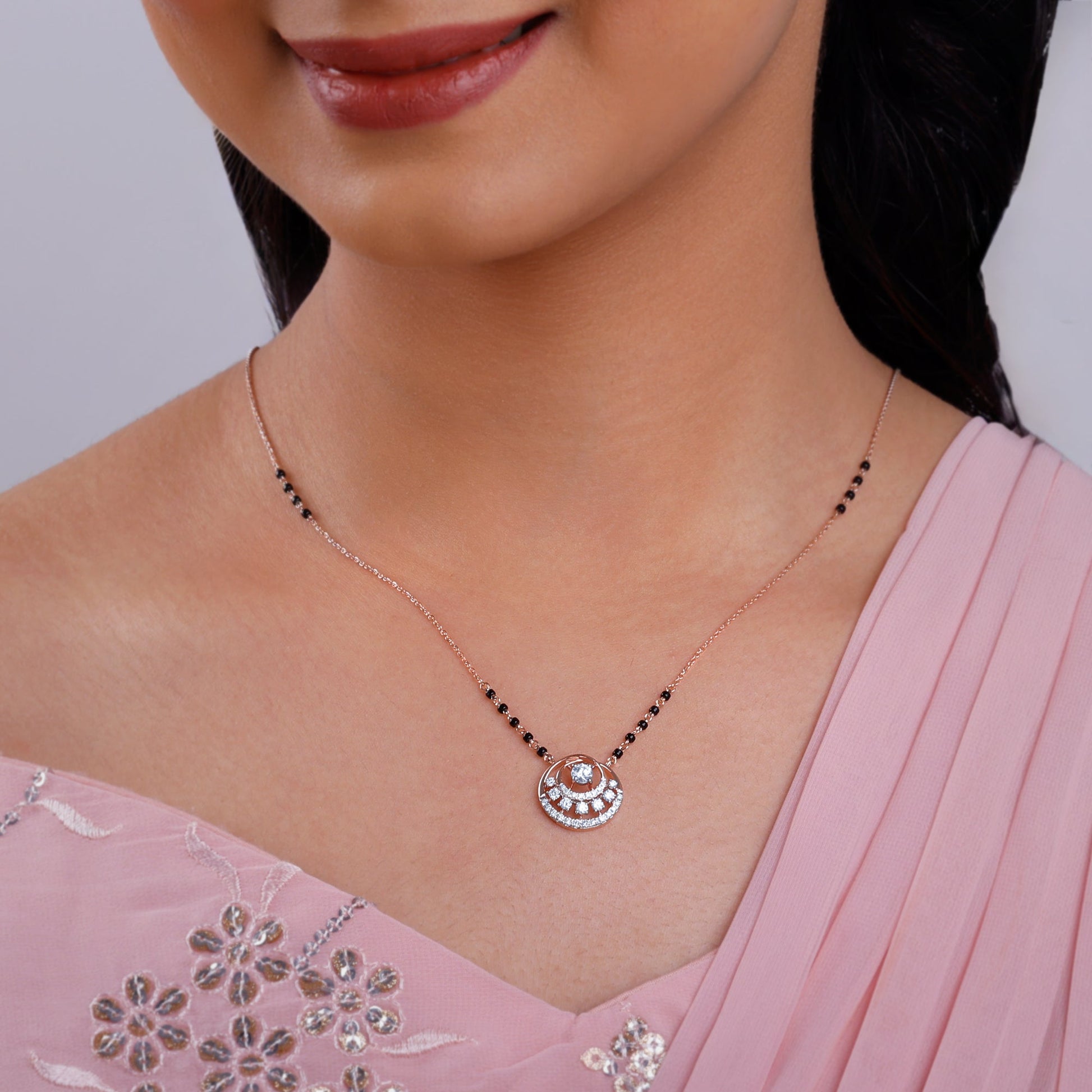 Rooted in love, finished in sparkle. This mangalsutra is all about celebrating the depth of your bond with rose-tinted brilliance.