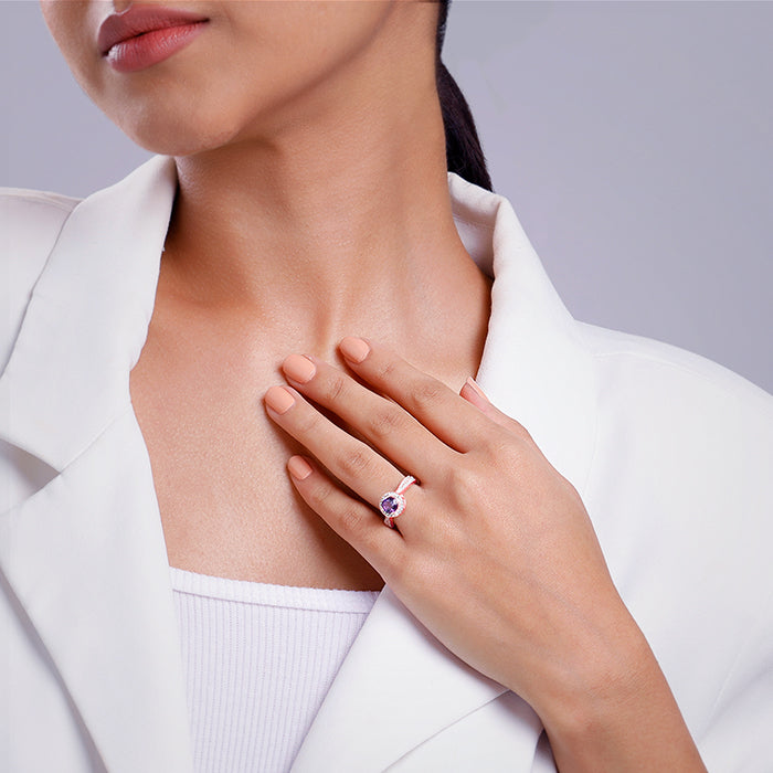 The blush of rose gold and the purple calm of amethyst, your wearable sanctuary. A soothing talisman for February-born souls and beyond.