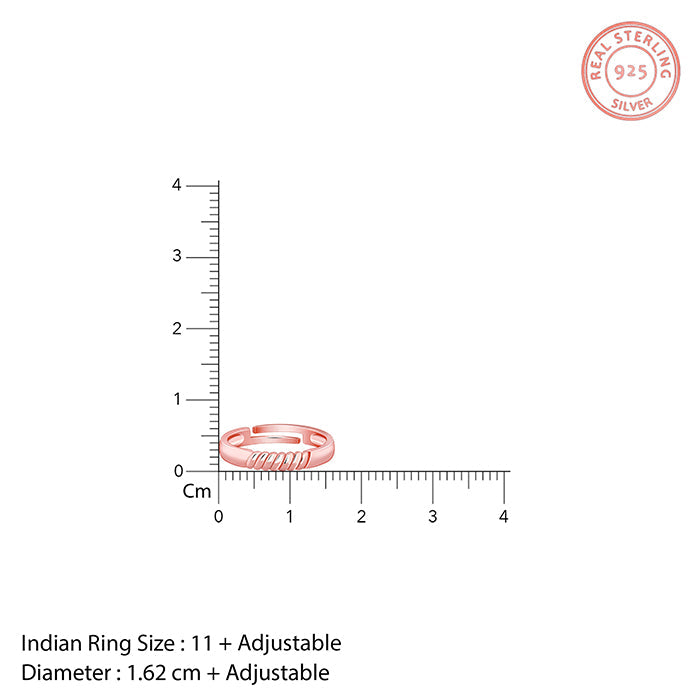 This rose gold adjustable ring has a design of curvy engraved lines in the centre.