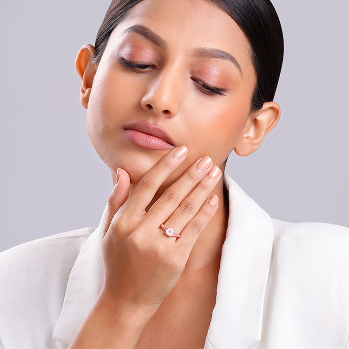 This rose gold womens ring features a natural, circular-shaped rose quartz stone at the centre, set on a split shank band. From nature’s heart to yours - Trendy Freak's natural Gemstone Collection makes every occasion special, whether you’re gifting a loved one or treating yourself.