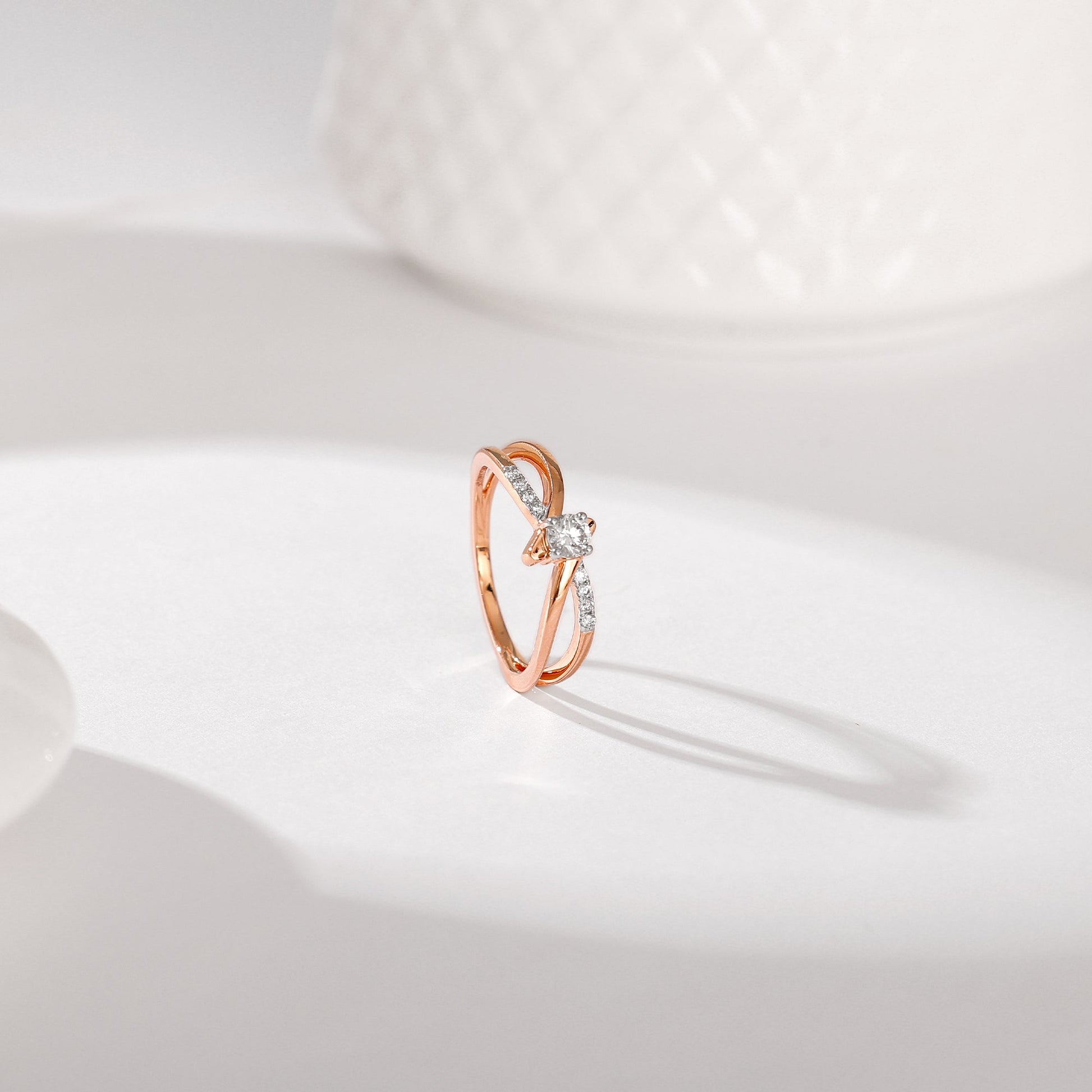 This pure rose gold ring features a dual-band studded with lab-grown diamonds and a lab-grown diamond placed at the centre.