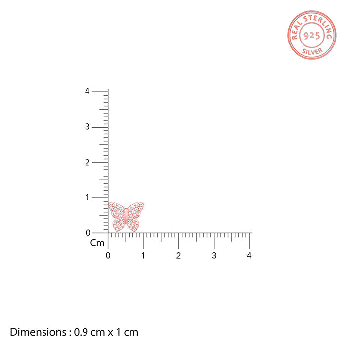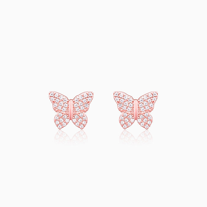 These rose gold earrings feature a butterfly motif studded with zircons.