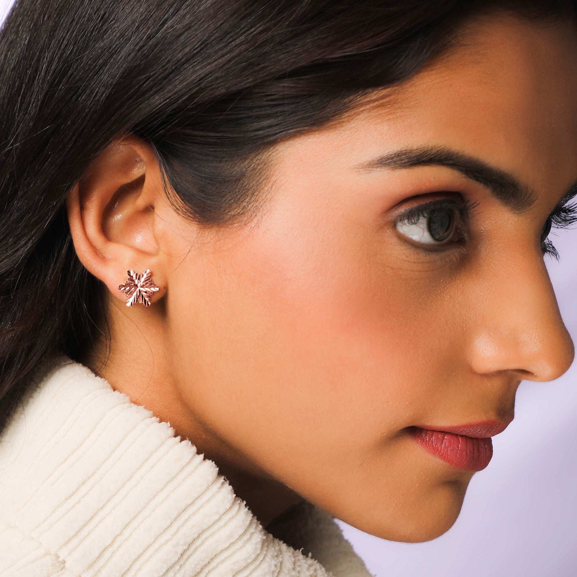 Whoever said winters are gloomy and grey clearly didn't appreciate nature's winter marvel. What are we talking about? Snow of course! Channeling the grace and beauty of a snowflake descending from the heavens, these Rose Gold Snowflake Studs are elegance personified.