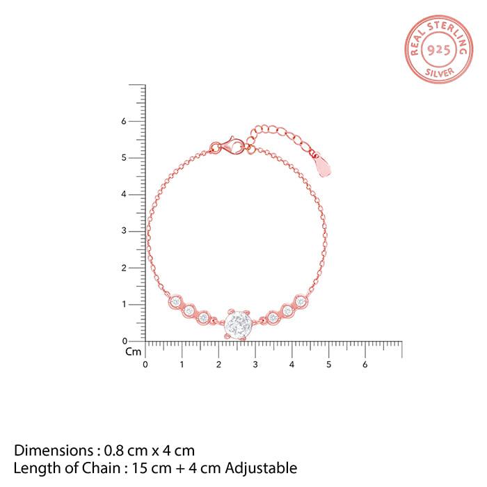 This Rose Gold Zircon Bracelet has a solitaire style cut zircon as its centre piece, flanked by triple zircons on both its sides.