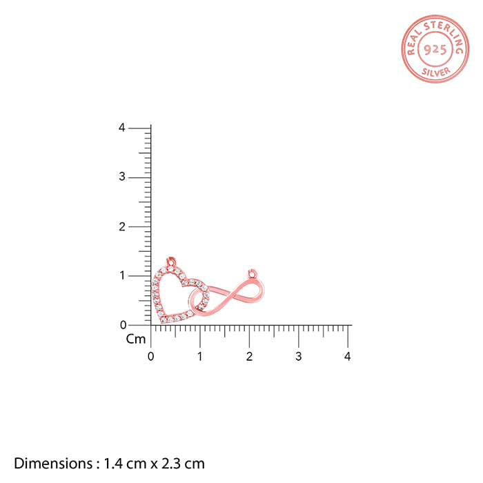 This rose gold necklace features a heart motif studded with zircons and an infinity motif interconnected.
