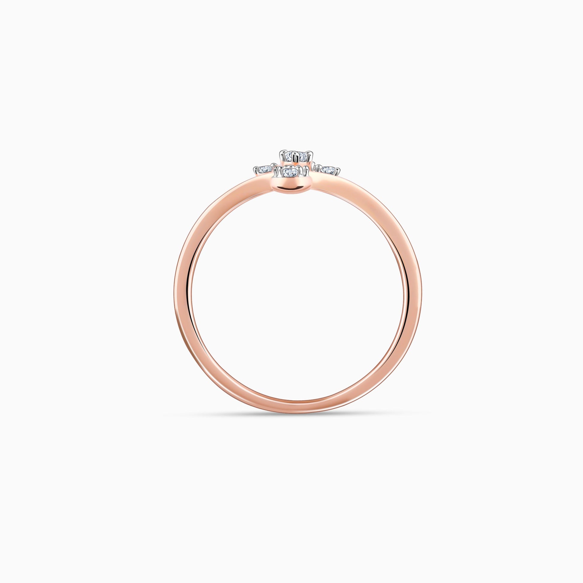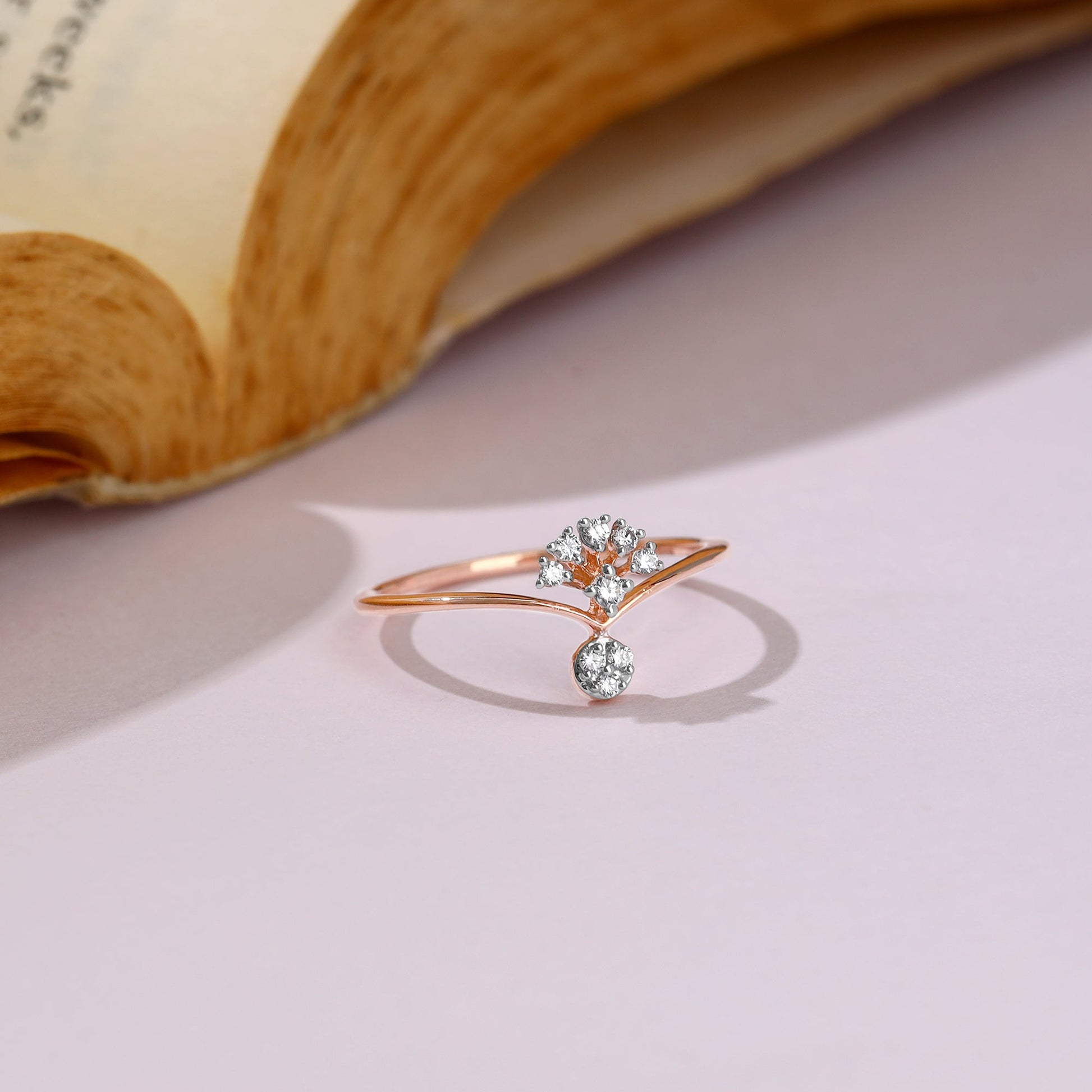 This rose gold ring has a sun design with a circle motif dangling below set with lab-grown diamonds.