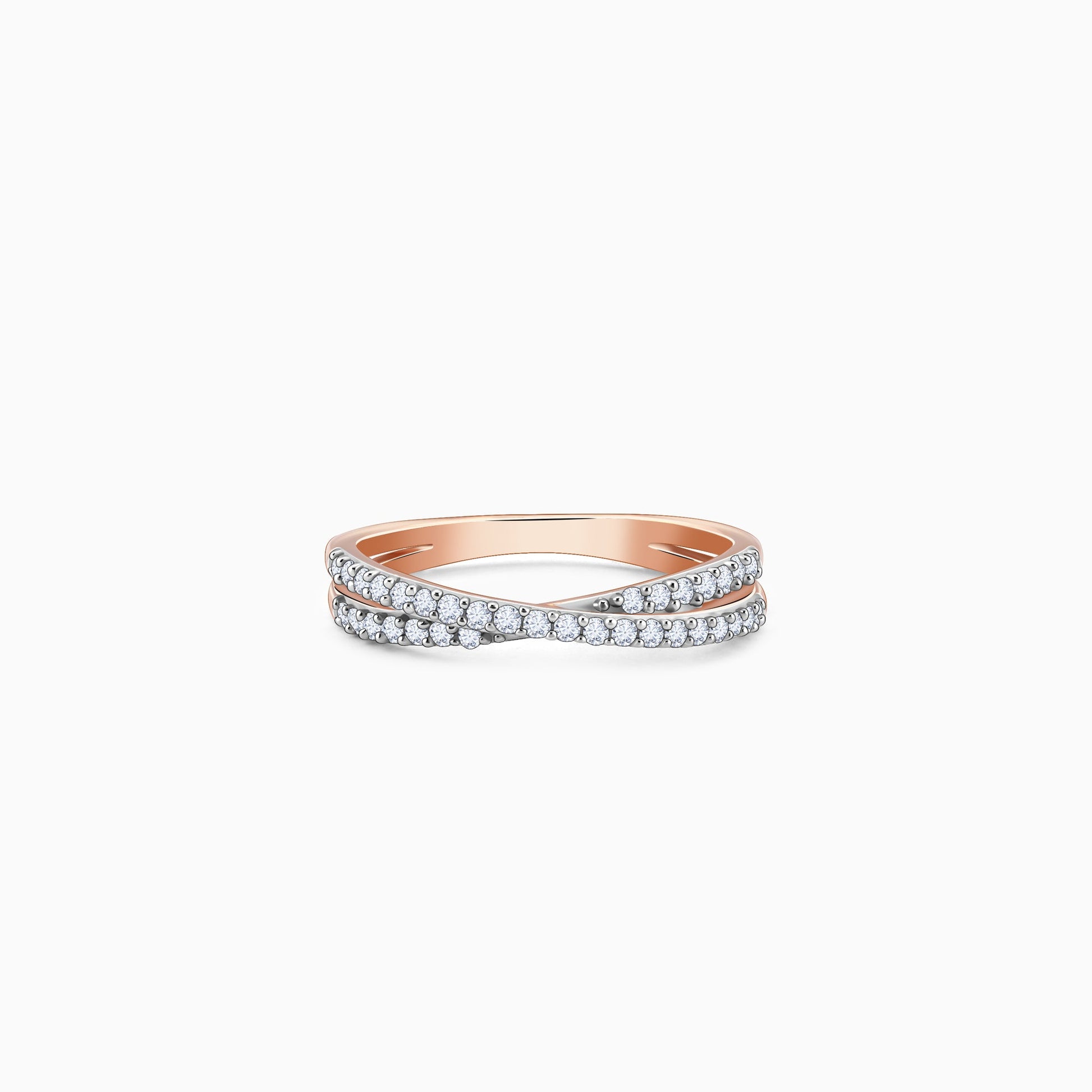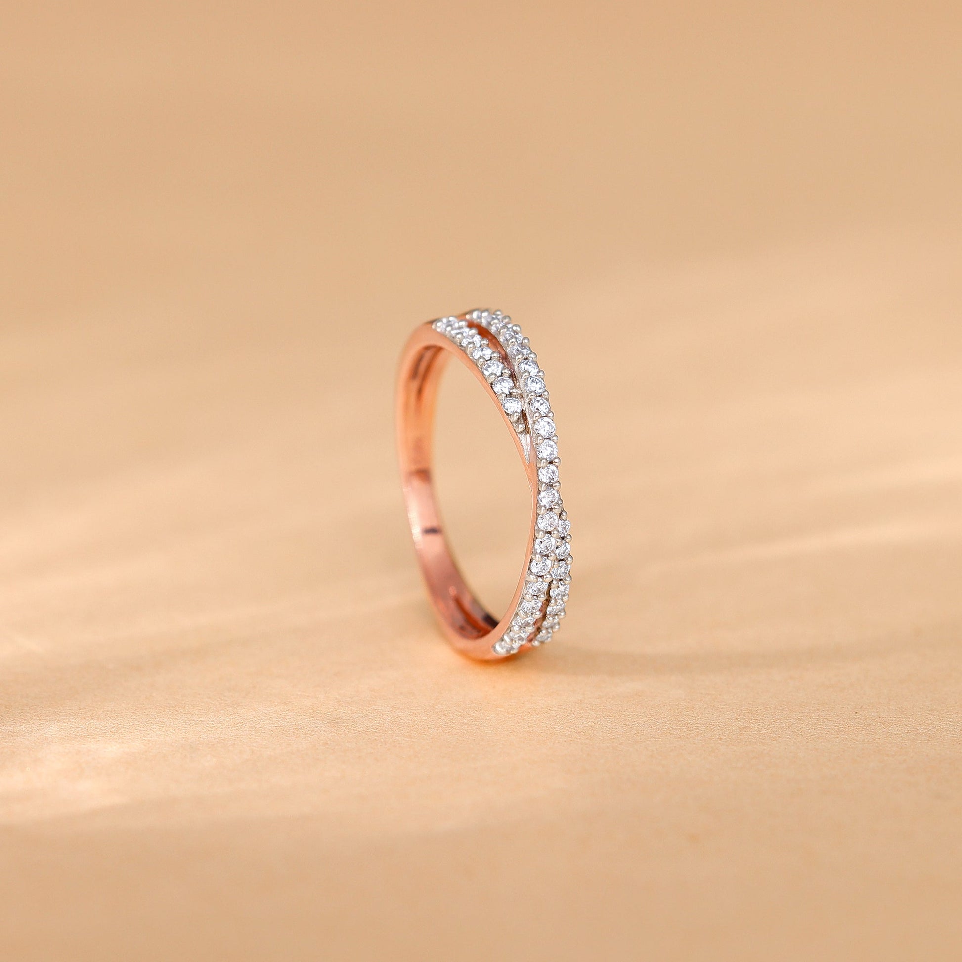 This pure rose gold ring for women features an elegant criss-cross design studded with lab-grown diamonds.
