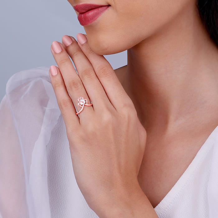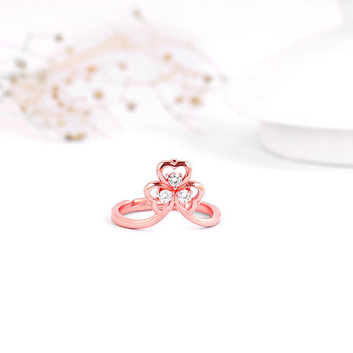 This rose gold ring has been handcrafted with love, especially for YOU! With three-leaf clovers and sparkling zircons, this is here to make YOU the luckiest person on the planet.