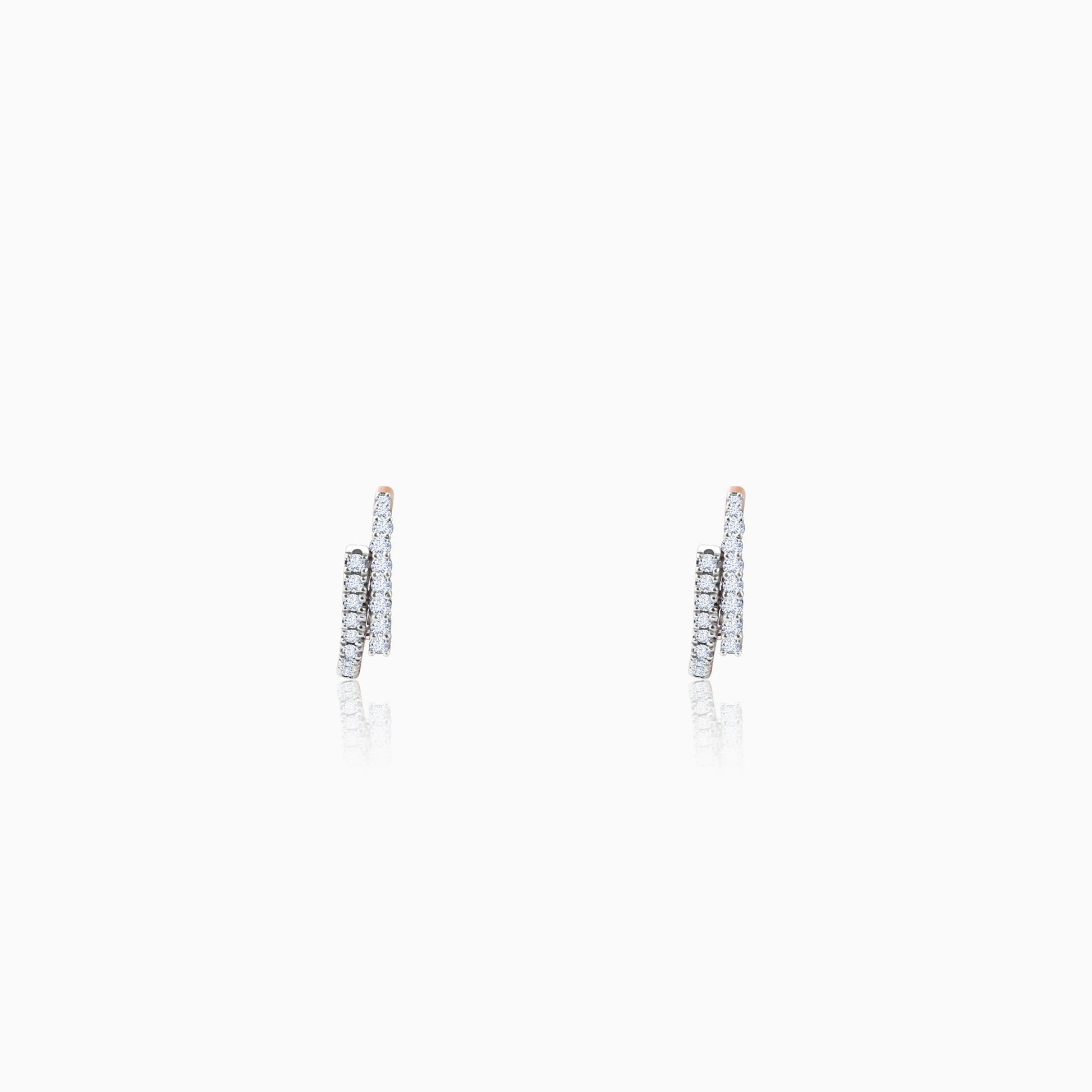 These pure rose gold earrings for women feature a bypass design with lab grown diamonds studded halfway through.