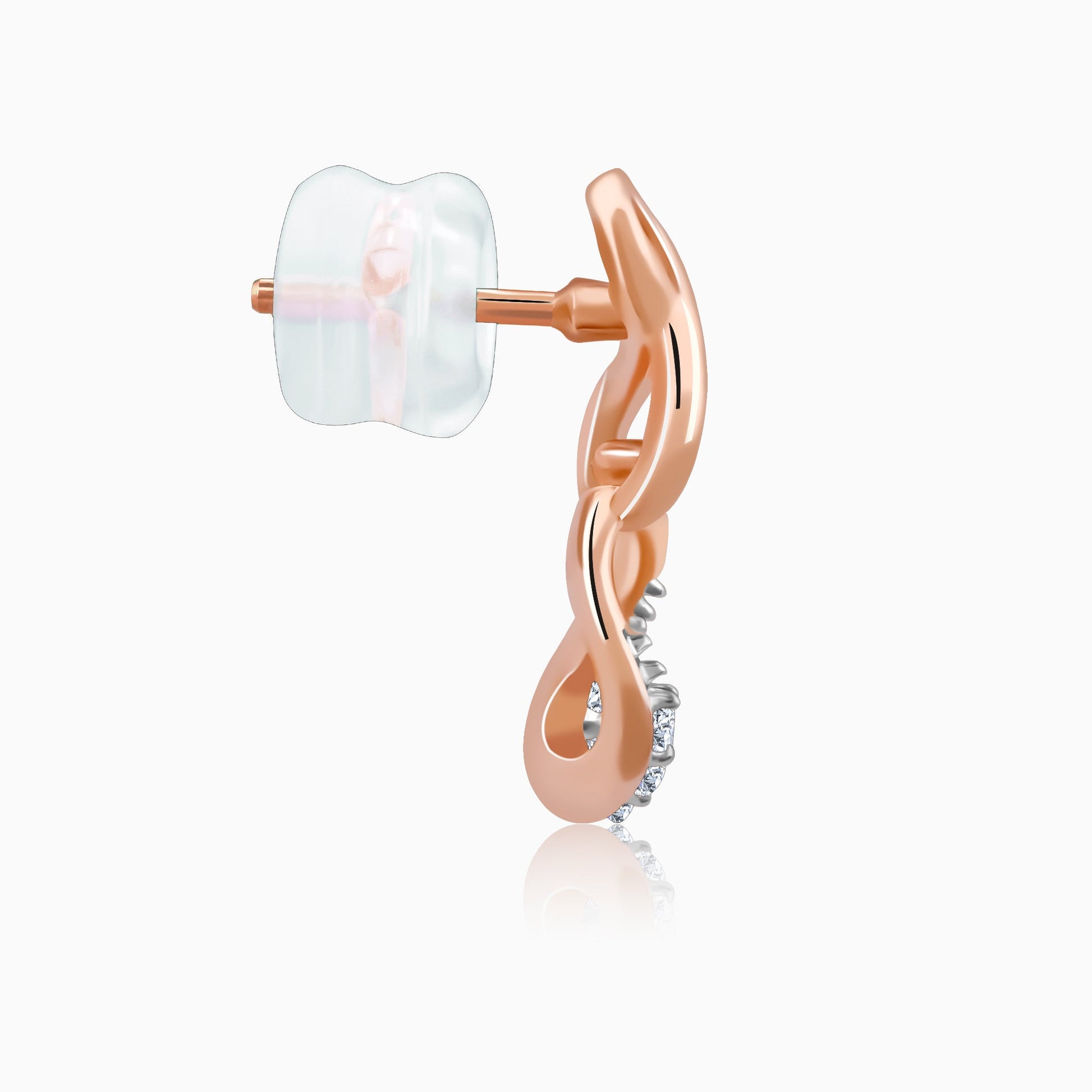 These rose gold earrings have an infinity motif with lab-grown diamonds.