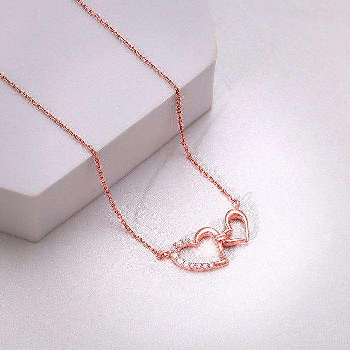 This rose gold necklace for women features two interlocking hearts—one fully paved with zircons and the other a polished, plain metal. The hearts are connected by a stylised, wrapped design. Fall in love all over again with our exclusive Valentine’s Collection: #WhatTheHeartWants. Here are our curated designs that will speak to your heart.