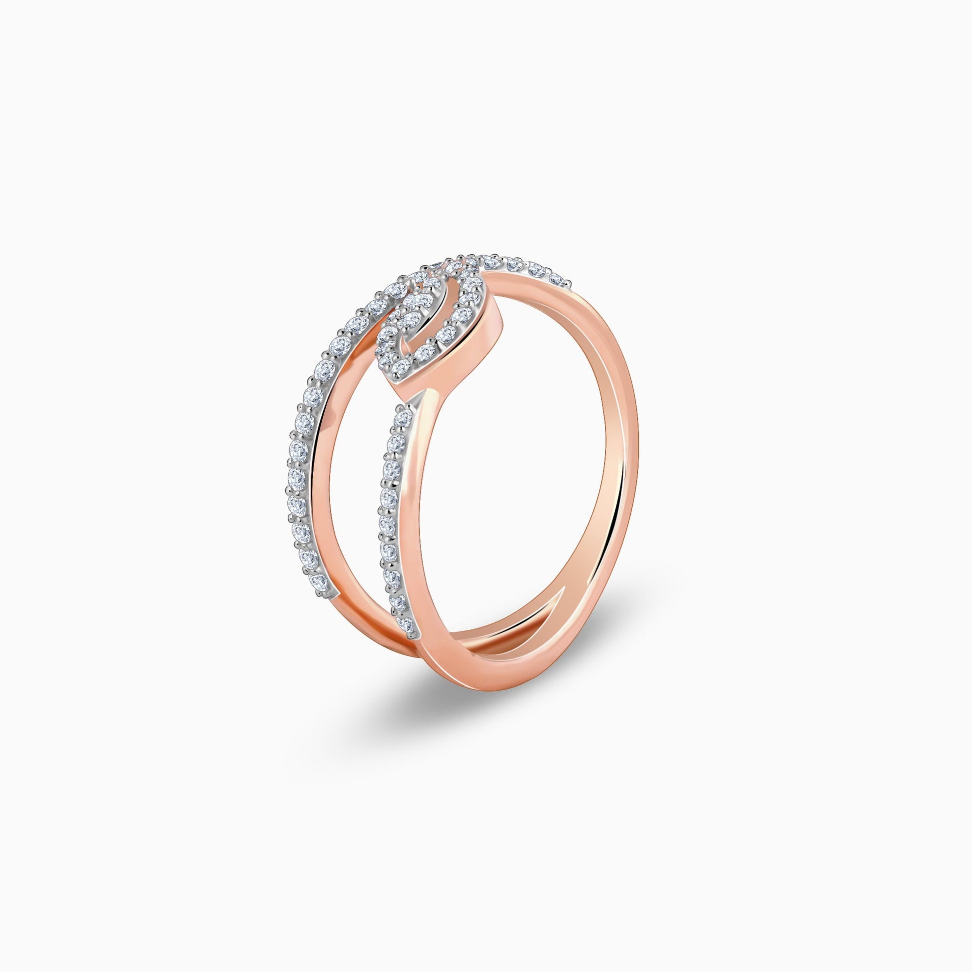 This pure rose gold ring features a graceful wave design that ends in a bud, elegantly studded with lab-grown diamonds.