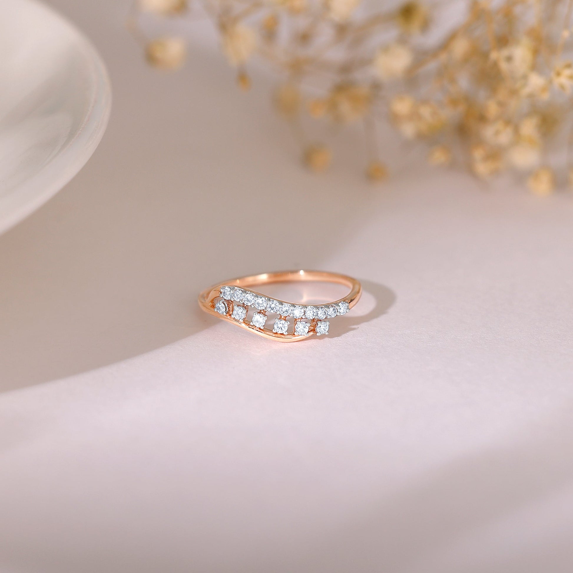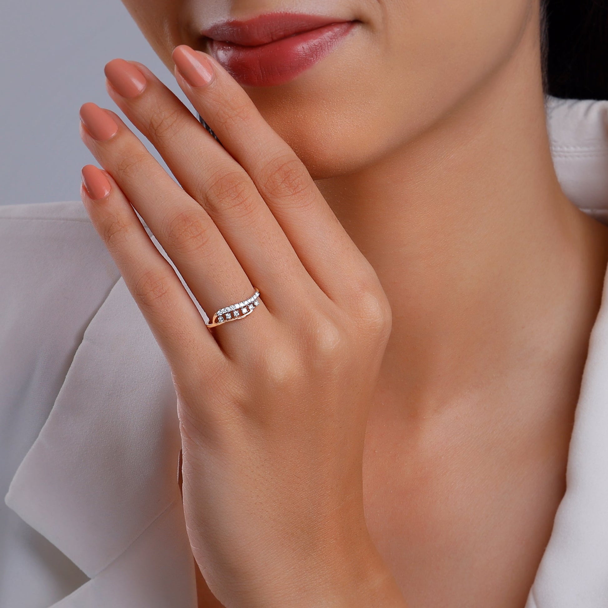 This pure rose gold ring features a layered design studded with lab-grown diamonds.