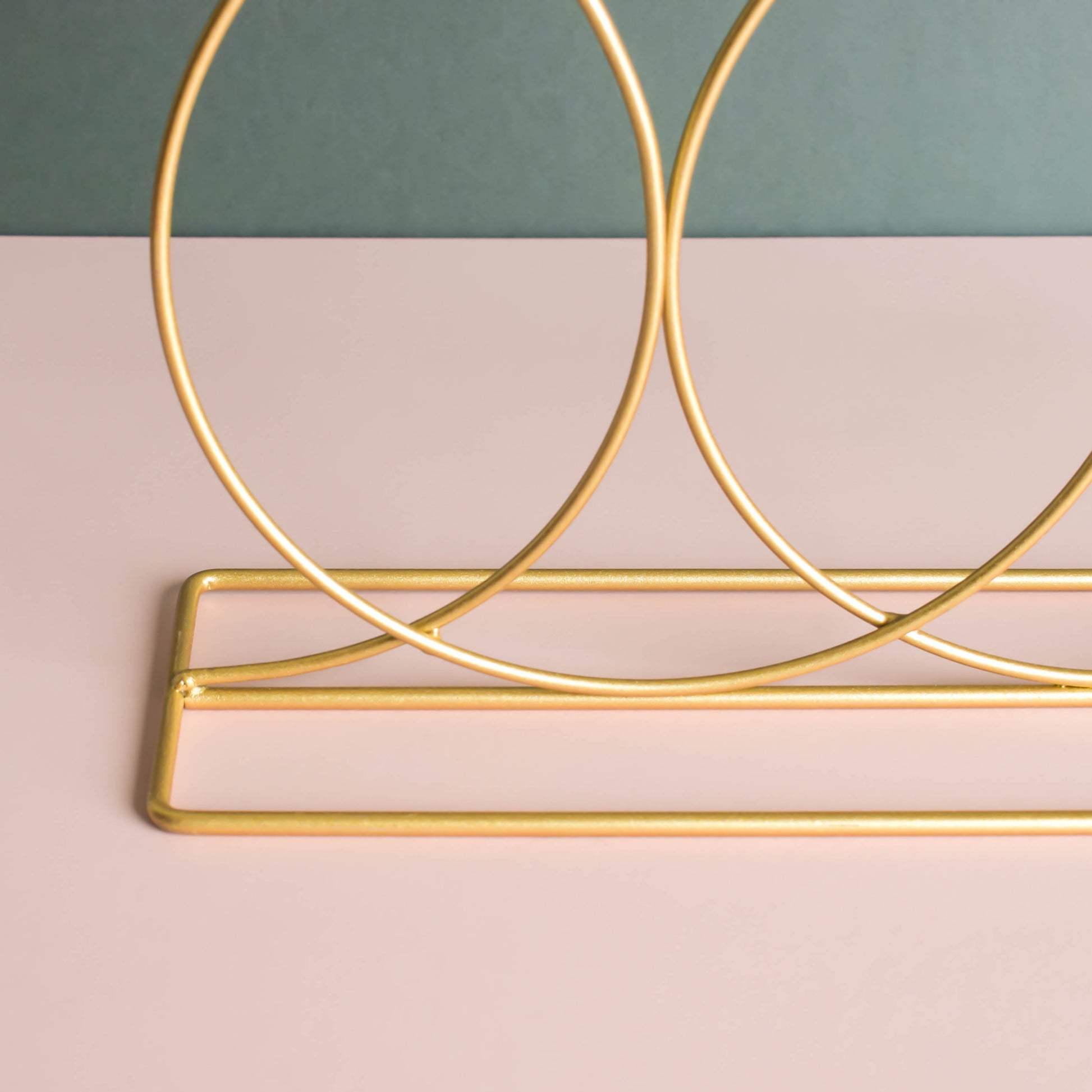 The golden-armed round-shaped candle stand is made of metal. It can be placed on the mantlepiece, console table, or even as a centerpiece on the dining table. It can hold the long taper candles to uplift the décor setting and enliven the room with its charm and beauty. The candle stand can also be gifted on any occasion.