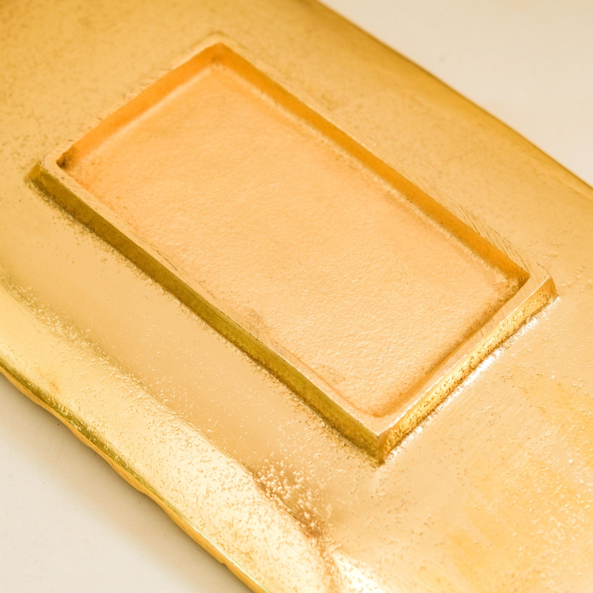 This decorative metal tray pairs a golden finish with durable aluminium craftsmanship. Designed for both display and function, it serves as a stylish base for snacks, décor, or everyday essentials.