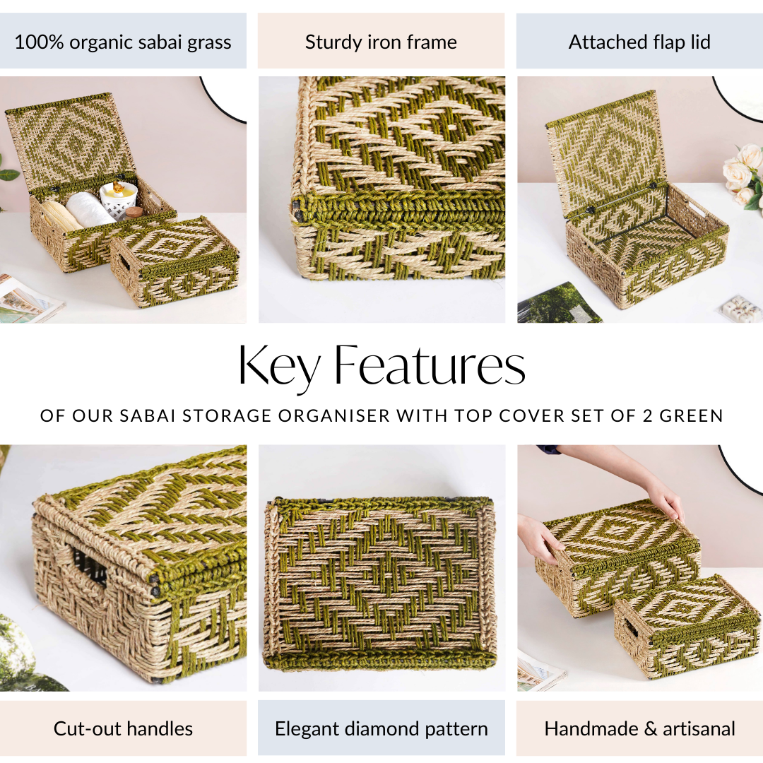 Sabai Storage Organiser With Top Cover Set Of 2 Green