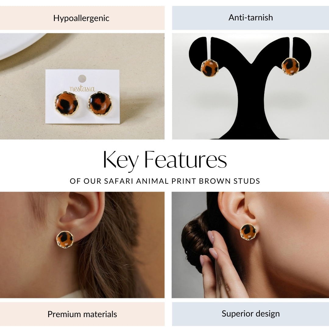 Safari Animal Print Brown Studs