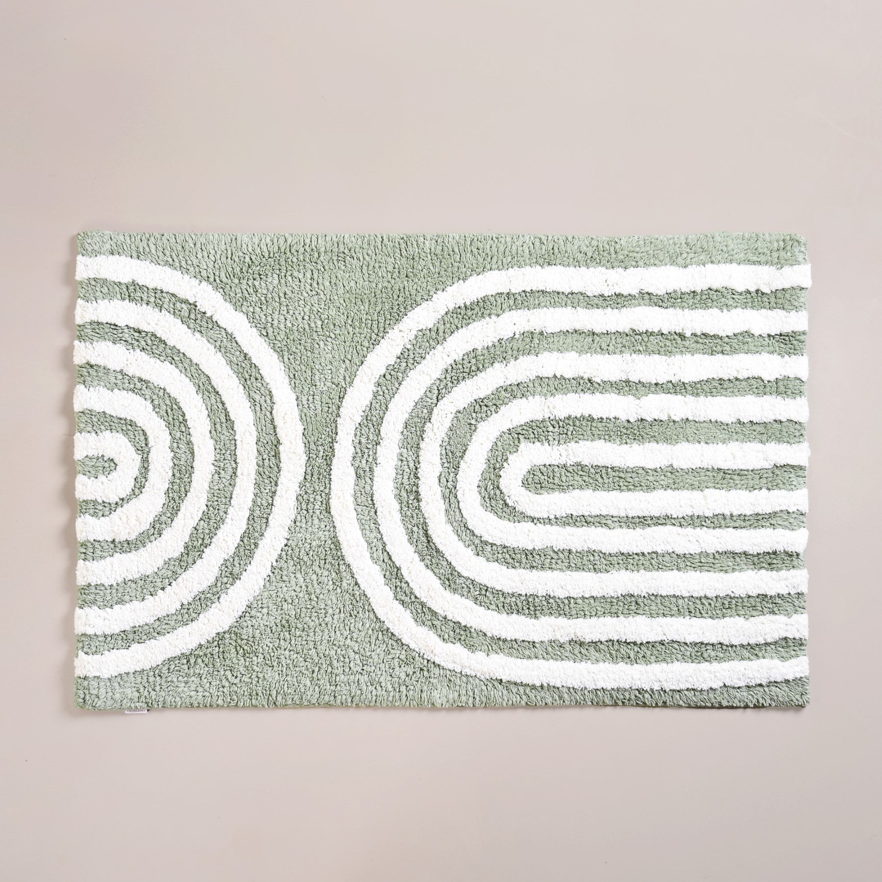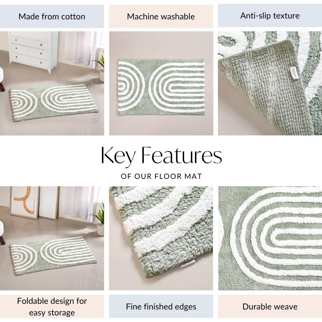 Sage Green Tufted Cotton Anti Slip Floor Mat 82x52cm