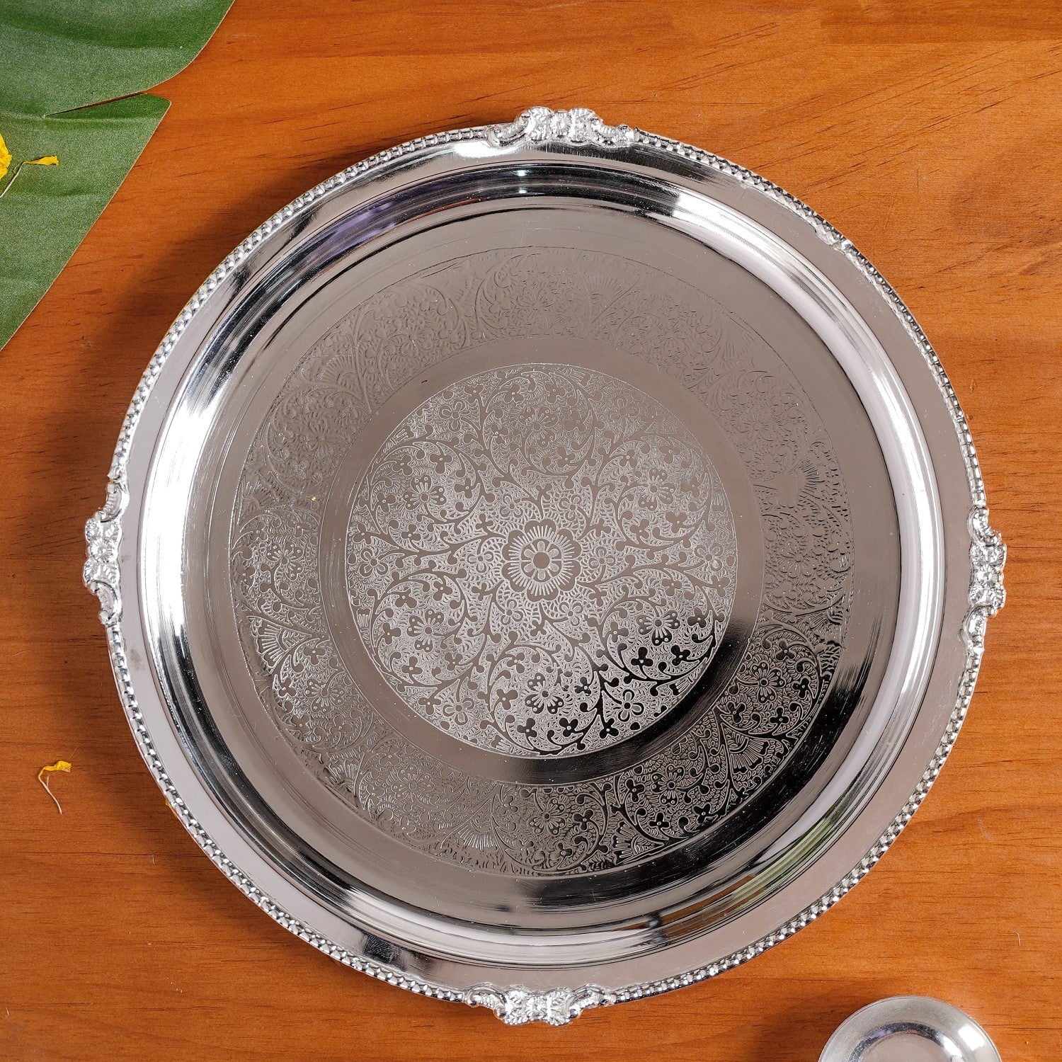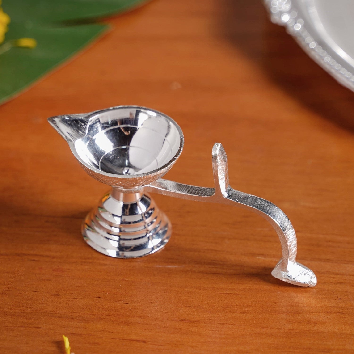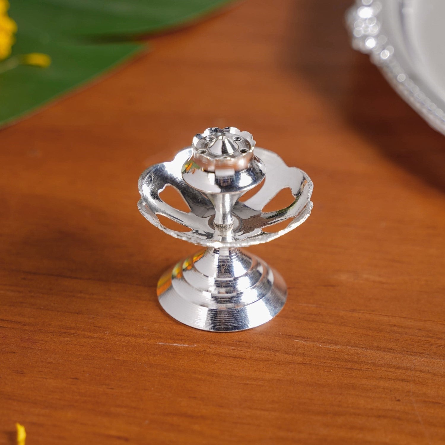Benefits: This thali set’s heat-resistant design keeps lit diyas safe without warping or overheating. The stainless steel surface resists stains from chandan, sindoor, and haldi, making cleaning easy. Silver-coated brass components prevent rust and maintain their shine over time. A stable, flat base keeps all offerings secure during rituals, while the compact, lightweight design makes the set easy to carry and use anywhere. With separate, dedicated accessories, setting up and cleaning after pooja is quick, hygienic, and hassle-free.