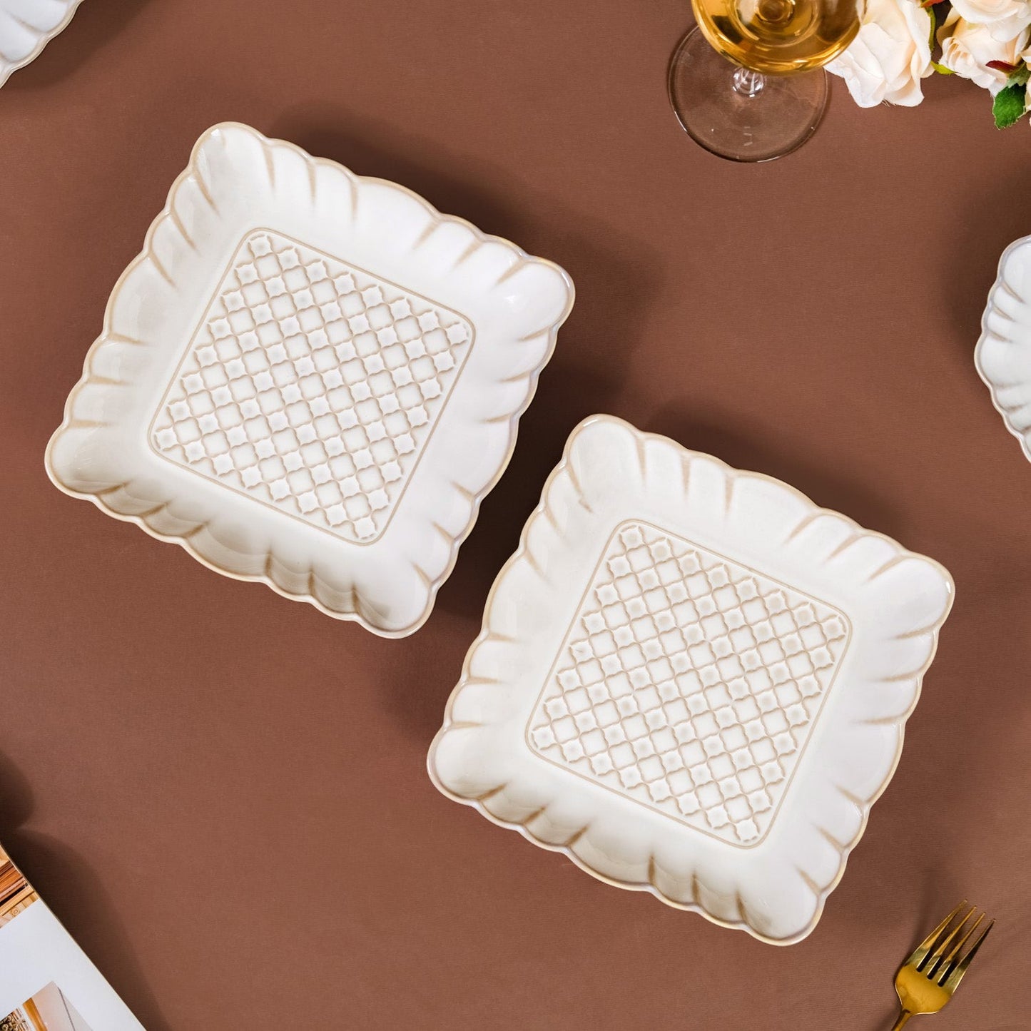 Scalloped Rimmed Square Platter Set Of 2 Ivory 8 Inch