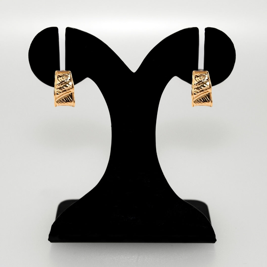 Elegantly fluid yet structurally significant, these beautifully crafted J hoop earrings exude timeless elegance. Inspired by the organic flow of natural forms, these earrings abstract the natural curvature of a classic hoop. The gold finish is paired with a textured surface, creating a striking balance of smoothness and depth. A versatile addition to any collection, these earrings effortlessly elevate any look.