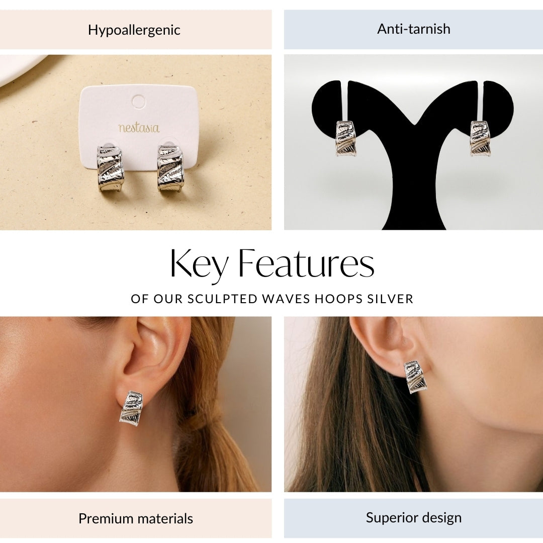Striking in their simplicity yet rich in detail, these silver earrings make a bold statement of modern elegance. Drawing inspiration from the natural flow of organic curves, their design captures the essence of gentle movement. The polished silver finish, paired with a textured surface, offers a harmonious balance of shine and depth. A perfect statement piece, these earrings elevate any ensemble with effortless elegance.