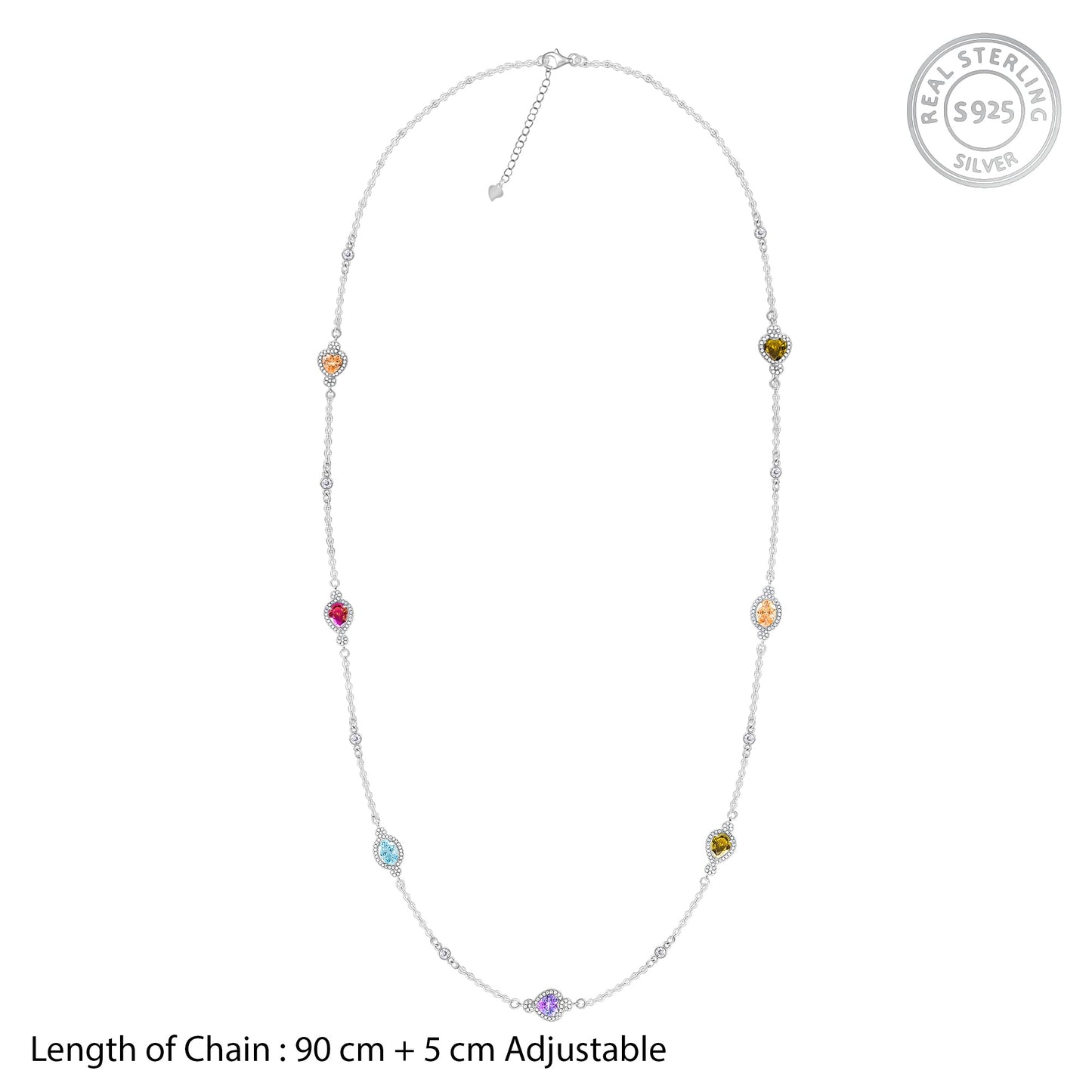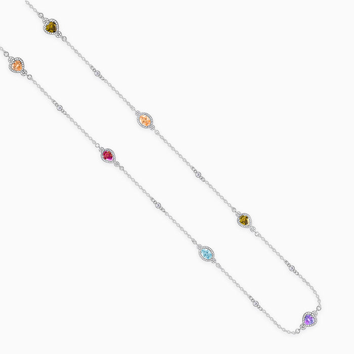 This necklace is pure joy, a celebration of colour that belongs in your collection. A chic station design, colourful sparkling stones are set in halos along a fine silver chain, adding a sophisticated, can't-miss pop to any outfit.