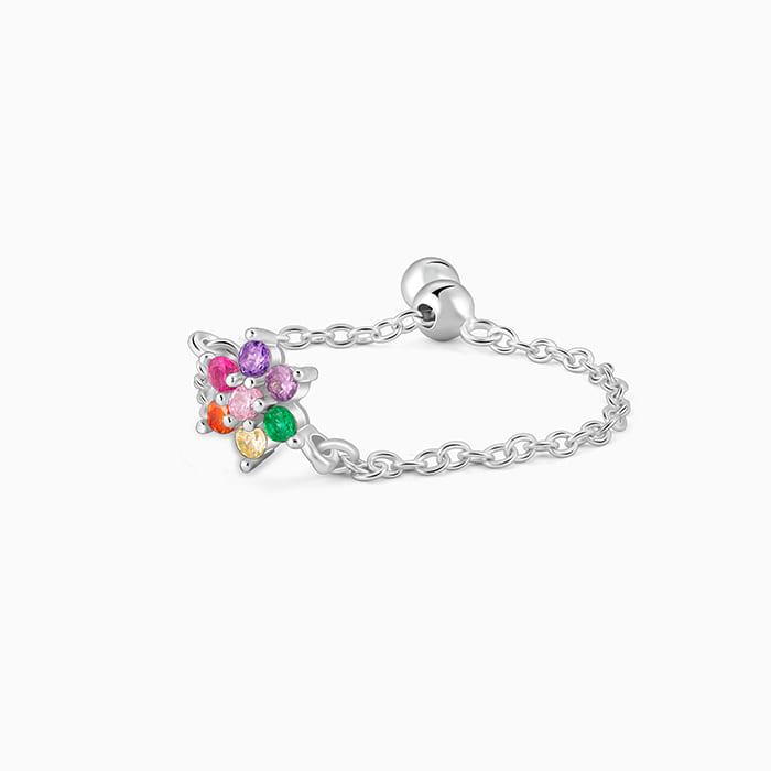 This unique silver chain ring for women features a floral motif studded with coloured stones. Fall in love all over again with our exclusive Valentine’s Collection: #WhatTheHeartWants. Here are our curated designs that will speak to your heart.