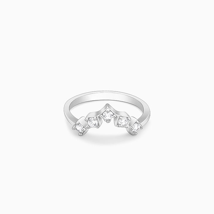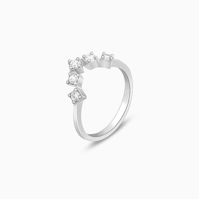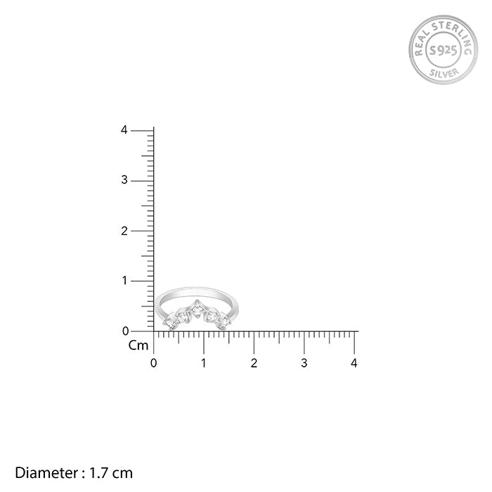 This gorgeous silver ring features an upturned V design with zircon studded.