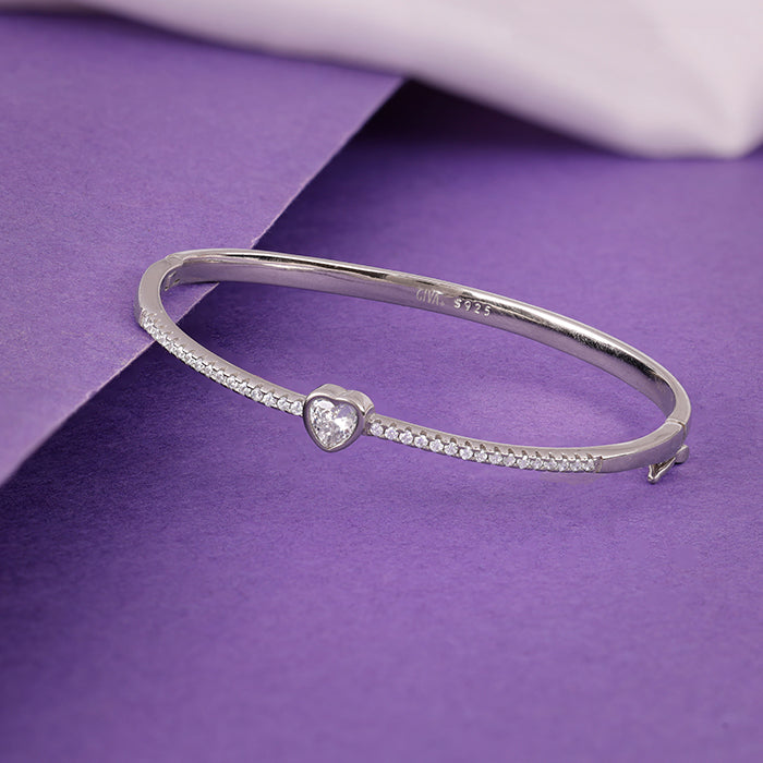 The silver bracelet has shiny zircons with an adorably cute heart-shaped zircon at the centre that will melt your heart.
