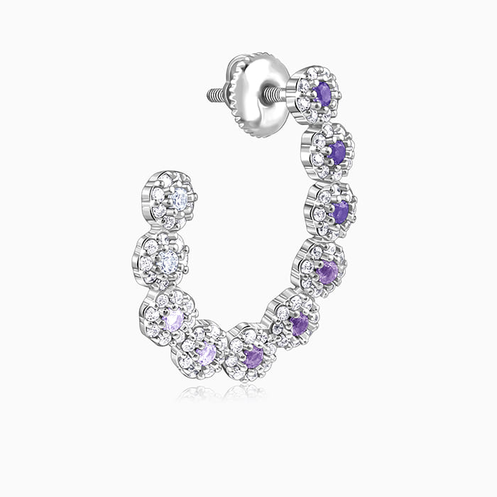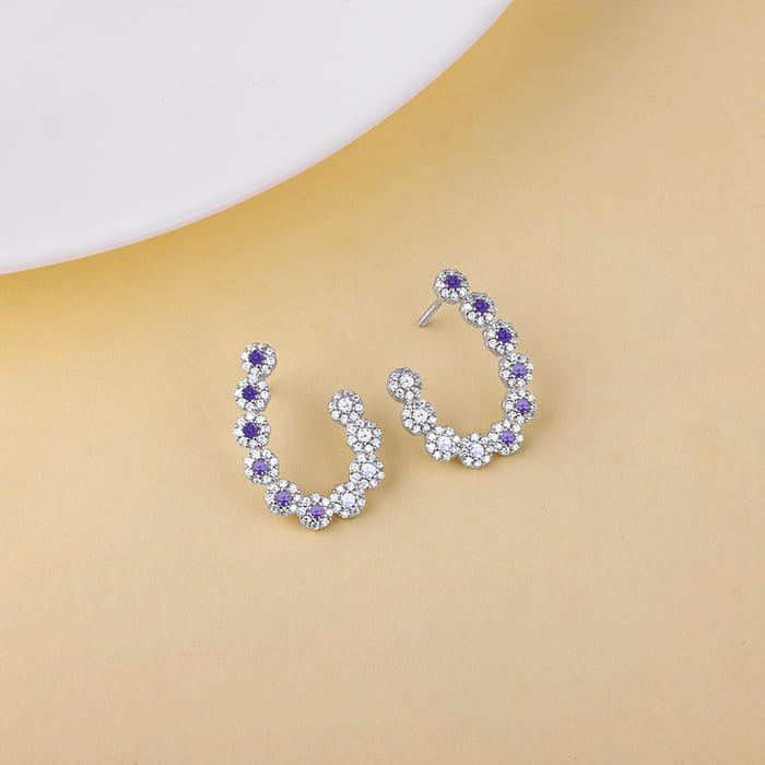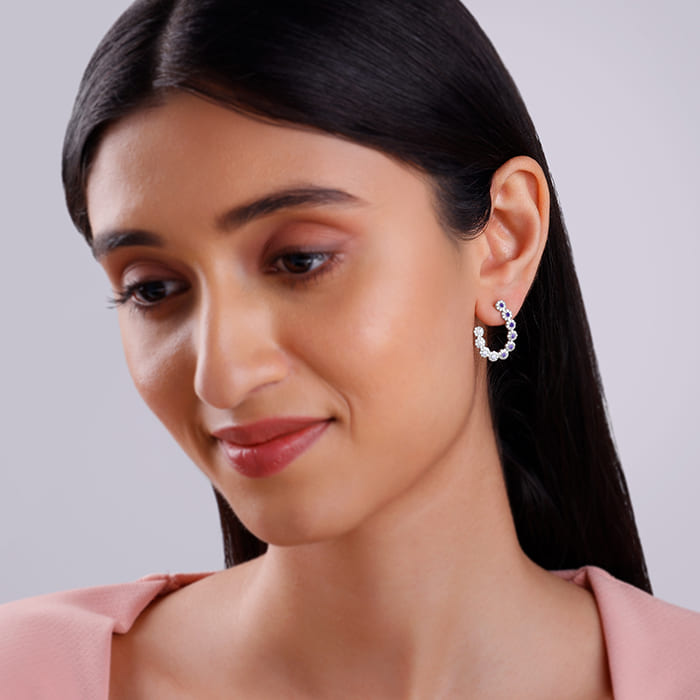 These silver earrings for women feature two half S-shapes, facing toward each other. Blue coloured stones and zircons accentuate these beauties further.
