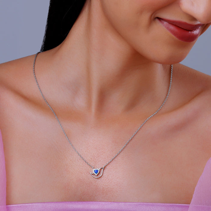 This silver necklace features a bird motif with a heart within. The heart is set with a blue opal stone and surrounded by zircons. Let the stunning elegance of Trendy Freak Sky High inspire you to chase every dream and celebrate every milestone.