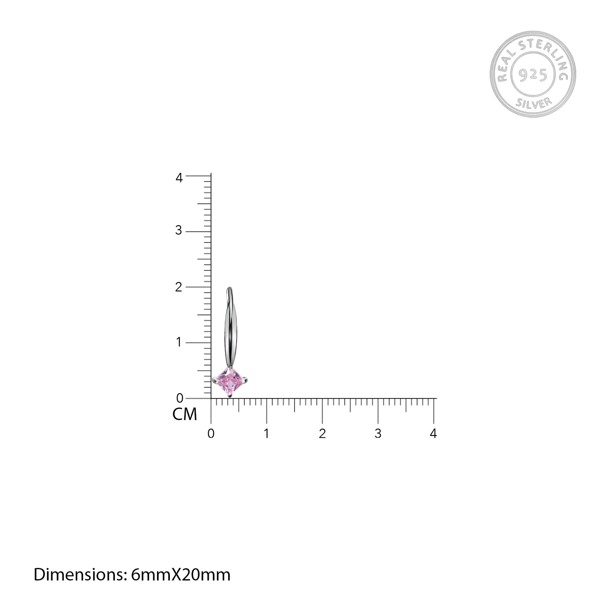 Silver Baby Pink Square Earrings