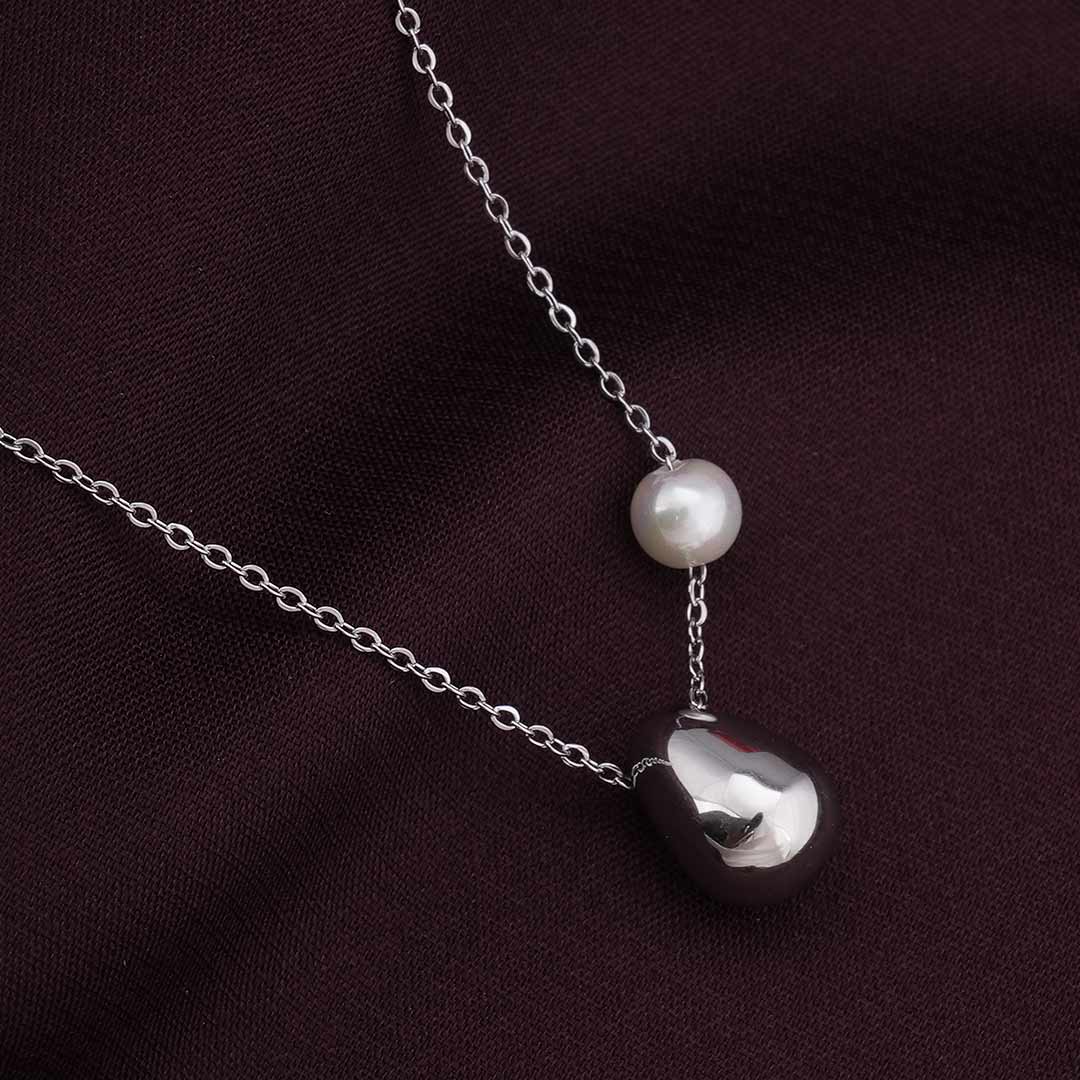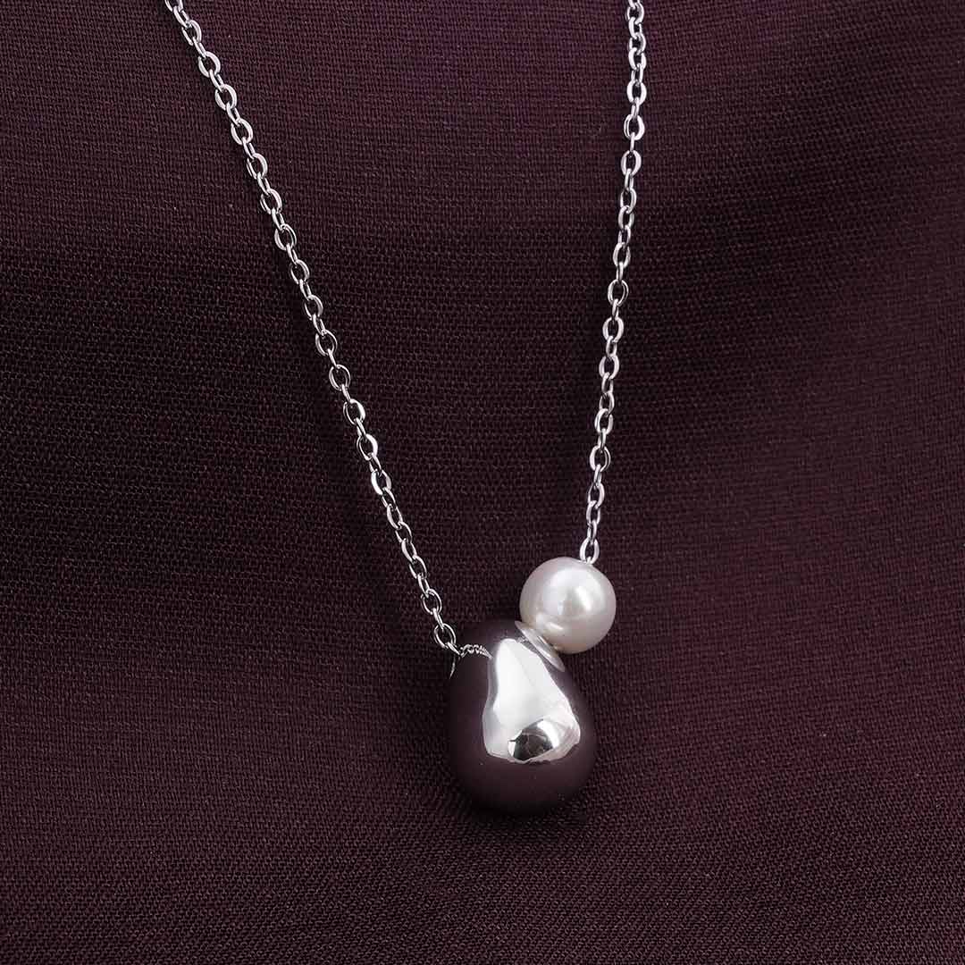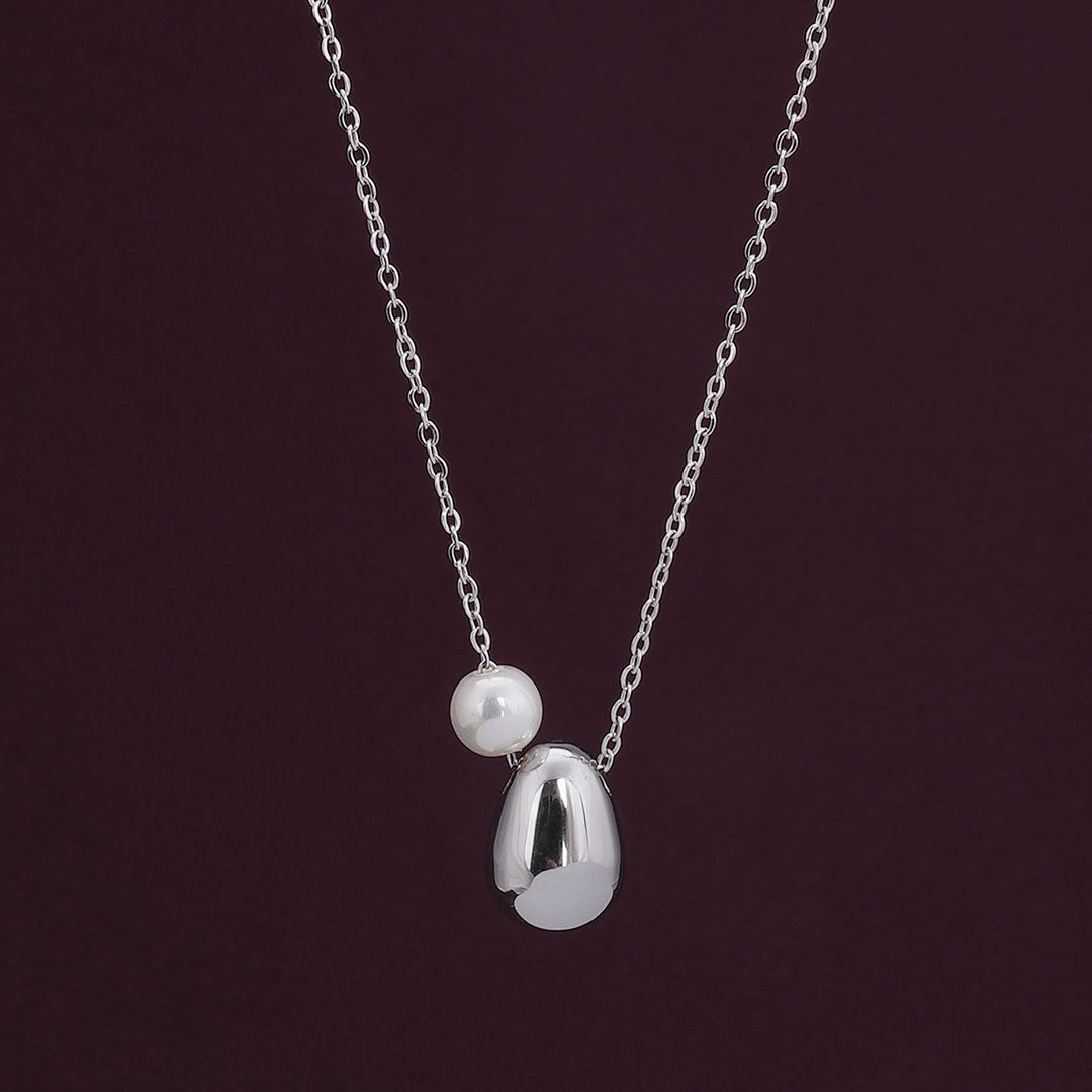The Silver Bean Necklace with Pearl is a modern yet elegant jewellery piece, featuring a sleek bean-shaped pendant accented with a luminous white pearl. Crafted in rhodium-plated stainless steel, this short necklace adds subtle sophistication to any outfit. Perfect for layering or wearing solo, it elevates casual and evening ensembles with contemporary charm and refined elegance.