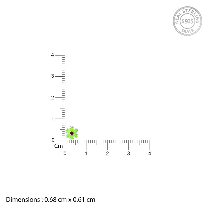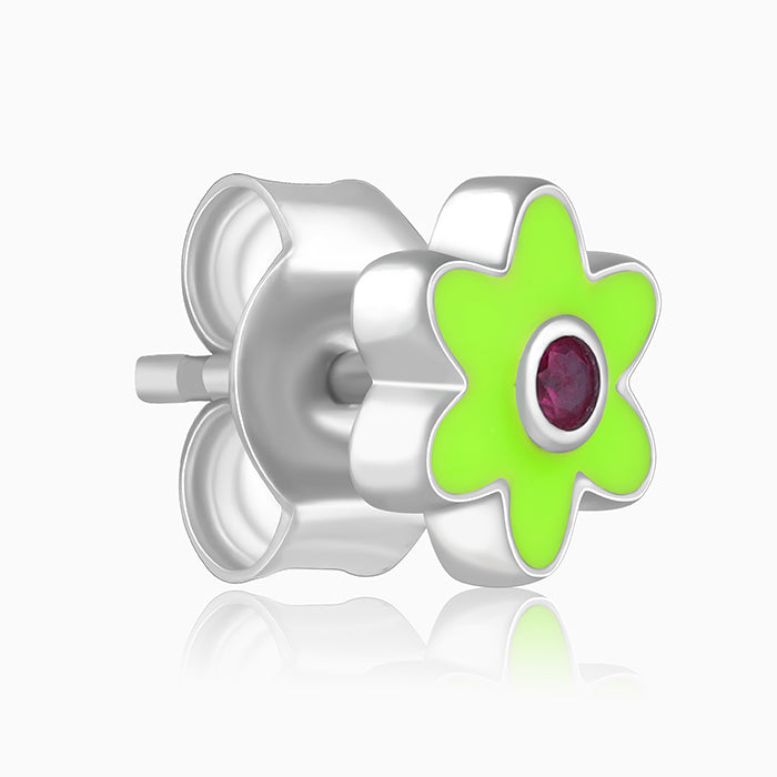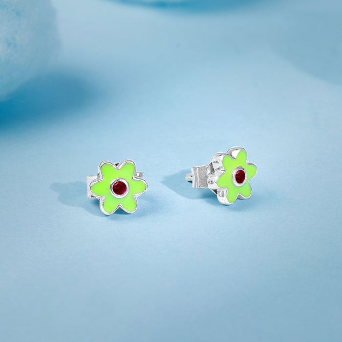 These silver earrings for kids feature a floral design accented with enamel. A coloured stone is placed at the centre of the flower for a bright and cheerful touch.