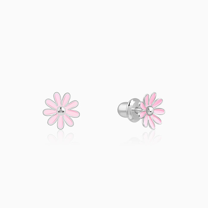 These silver studs for kids feature a cheerful daisy design, with each petal filled in pink enamel. A polished silver-toned centre and outline complete the delightful floral look.