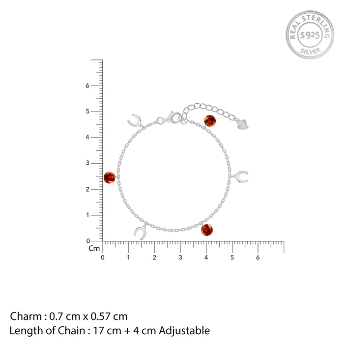 This silver bracelet for women features alternating charms: polished crescent moons and vibrant oval-cut coloured zircons.