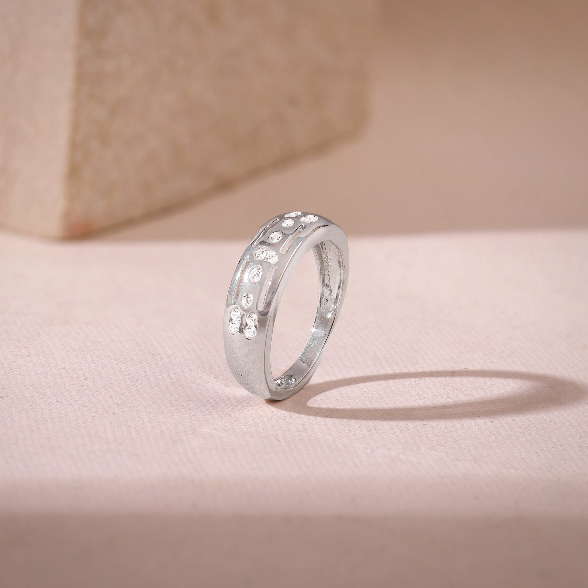 This silver mens ring features a scattered geometric pattern with sparkling zircons.