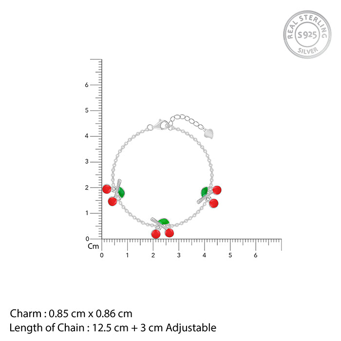 This silver kids bracelet features cherry motifs with colourful enamel.