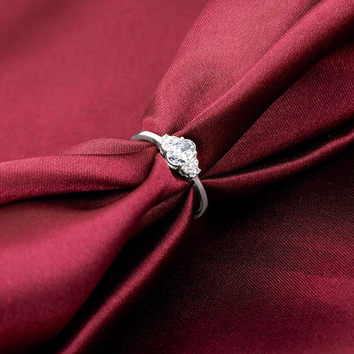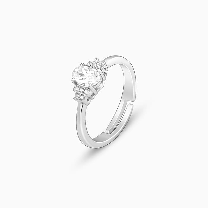 This silver ring has a gorgeous design with an oval shape zircon placed at the centre flanked by zircon bars.