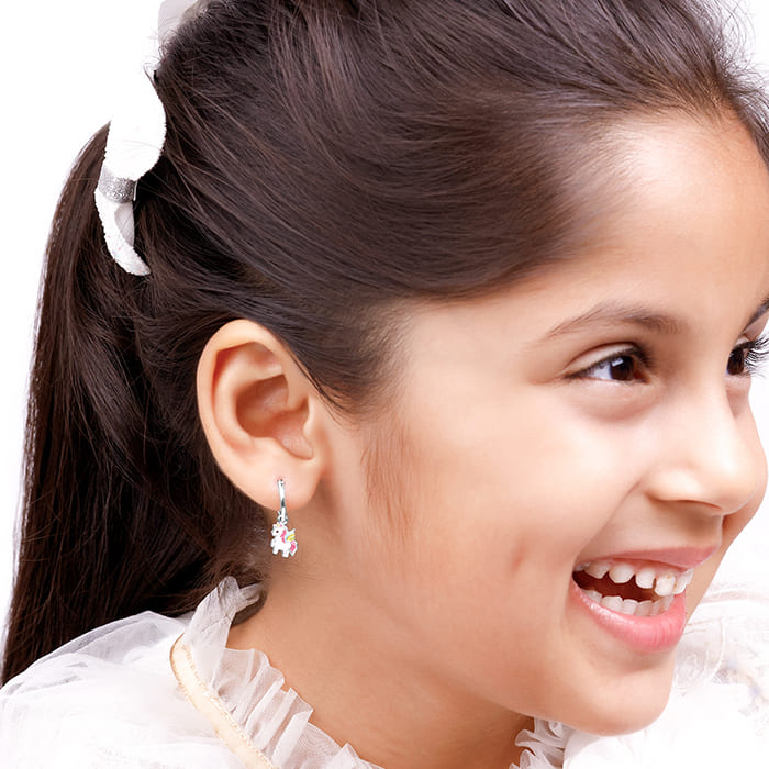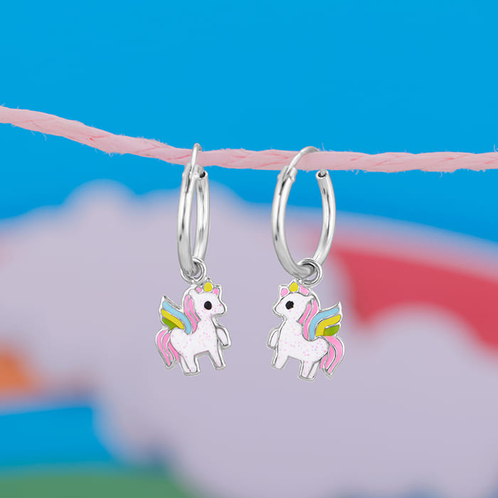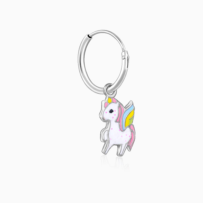 Silver Colourful Unicorn Kids Hoop Earrings (4-12 yrs)