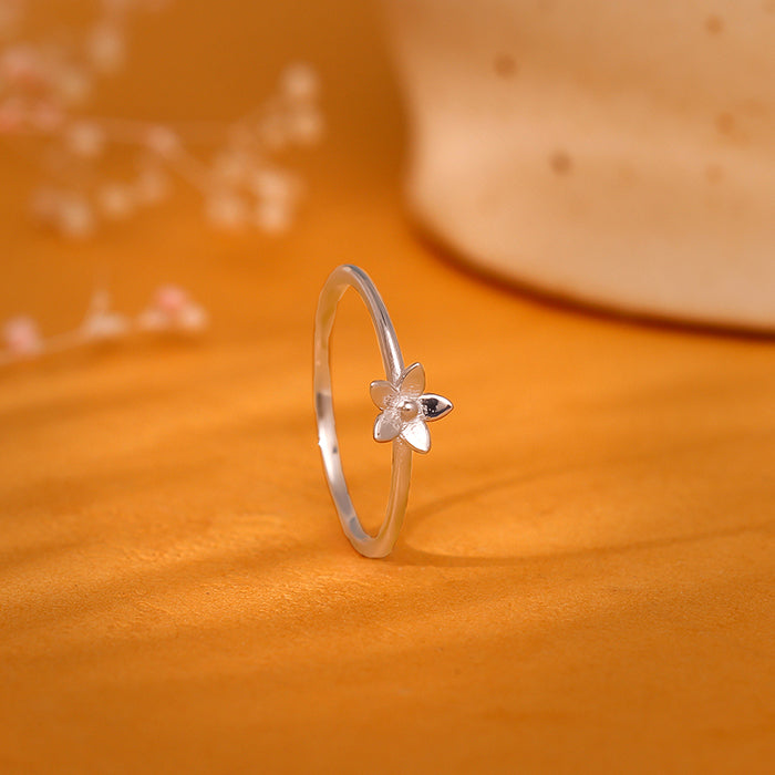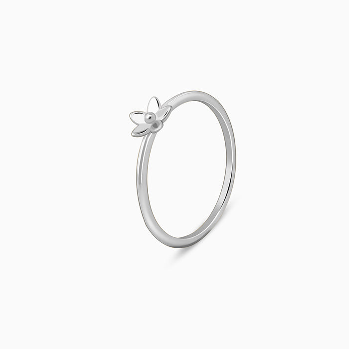 This silver ring features a flower motif with a zircon at the centre.