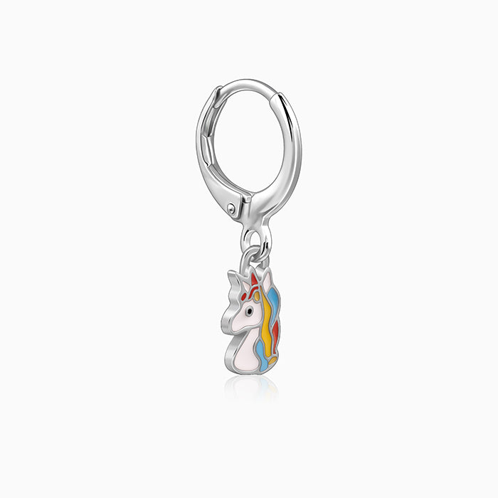 These silver earrings for kids feature an adorable dangling unicorn bust motif with its mane decorated with colourful enamel.
